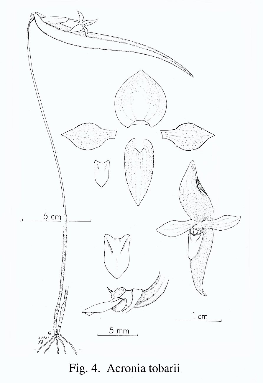 Acronia tobarii Luer & Hirtz Monogr. Syst. Bot. Missouri Bot. Gard.105: 247–248, f. 4. 2006.