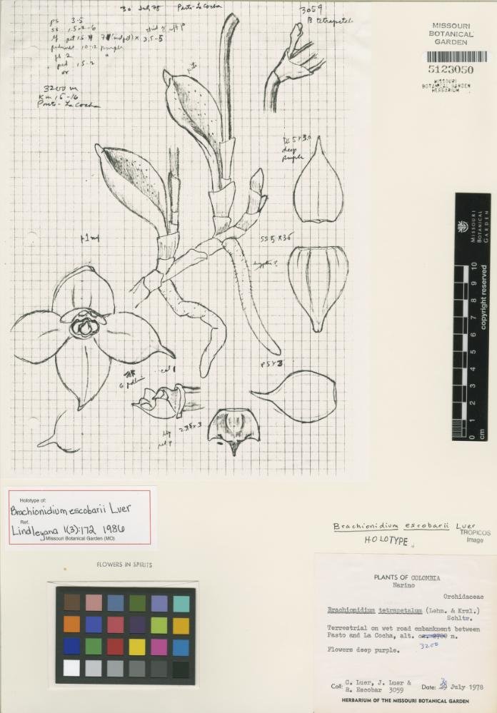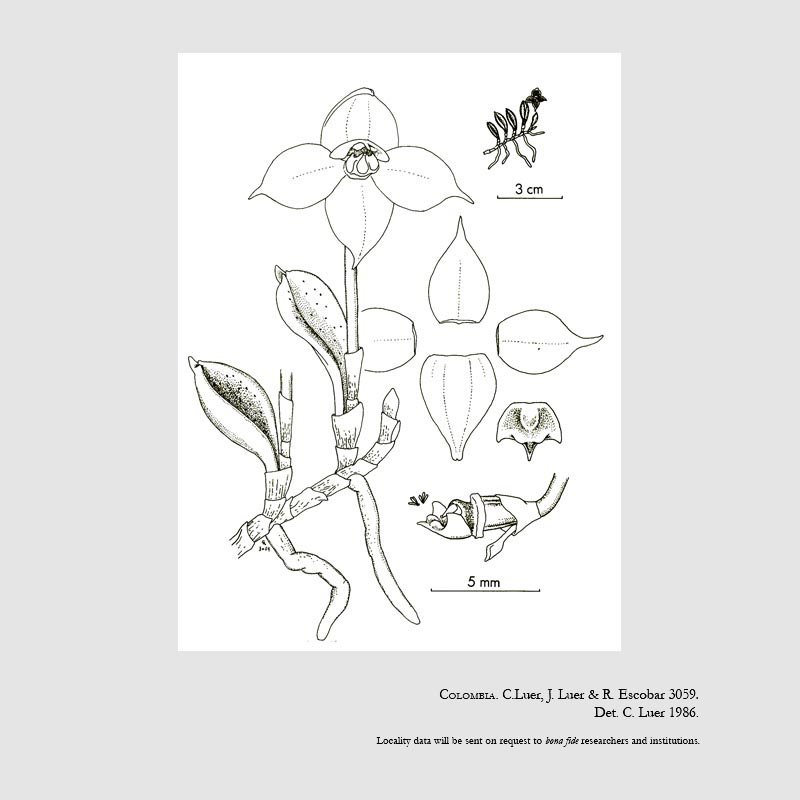 TYPE: Colombia. Nariño, terrestrial on damp road embankment, alt. 3200 m, between Pasto and La Cocha, 30 July 1978, C. Luer, J. Luer, & R. Escobar 3059 (holotype, MO; isotype, SEL; illustration of type; illustration of type).