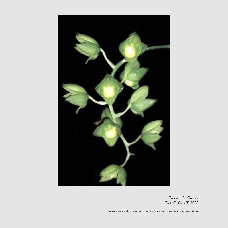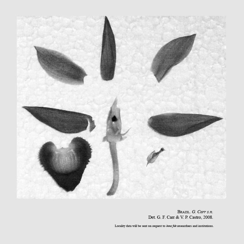 TYPE: Brazil. Santa Catarina, Município de Curupá, Orquidário Catarinense, 100m, floraison en culture en juillet 2007. G. Carr s.n. (holotype, SP; isotype, USF; illustration of type).