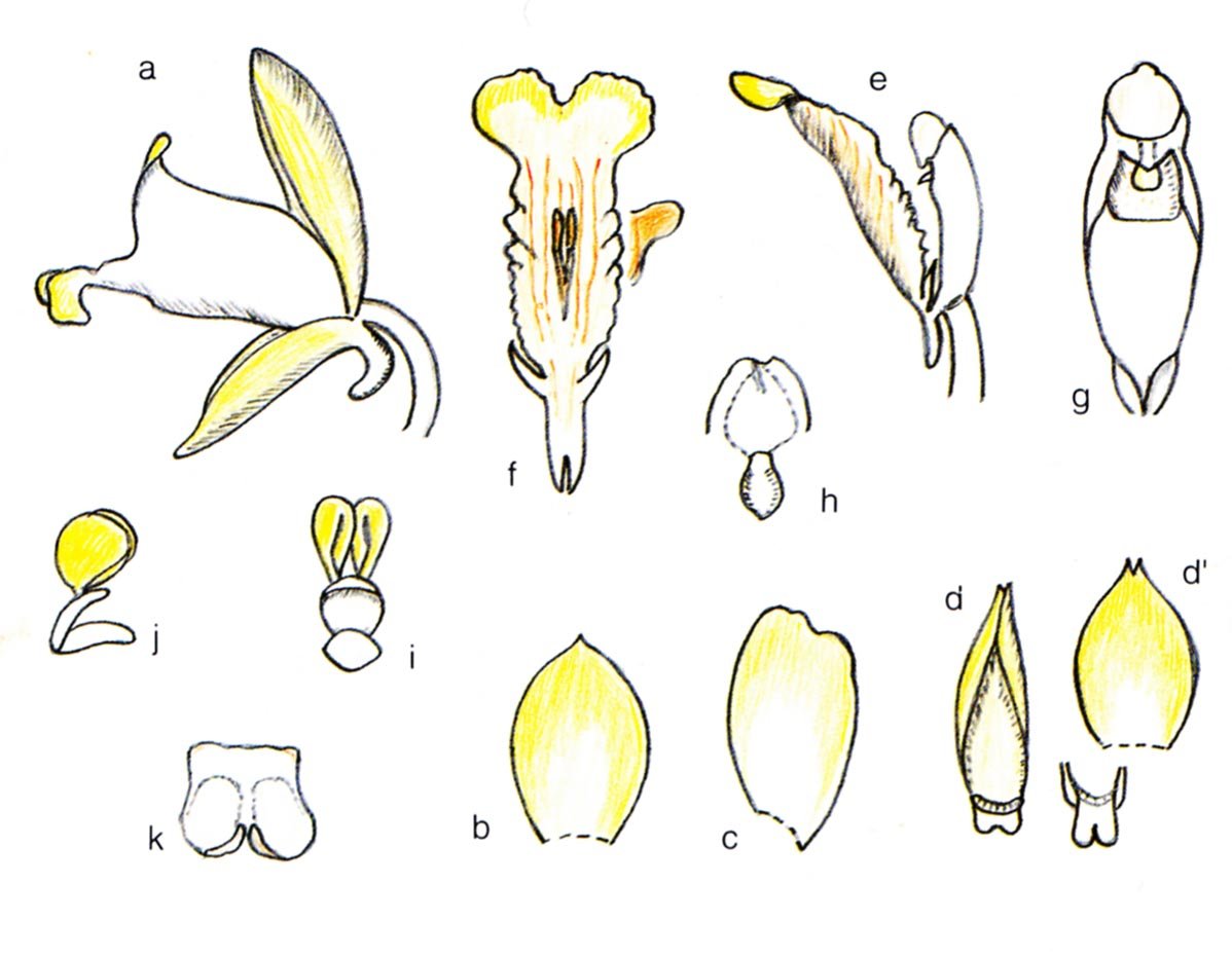 TYPE: Bolivia. La Paz: östlich Caranavi, bei Bellavista, 1400 m, Bot. Garten Heidelberg Orch-789, P. Leferenz s.n. (holotype, HEID; illustration of type; photo of the flower from the plant that served as the holotype; photo of the plant that served as the holotype).
