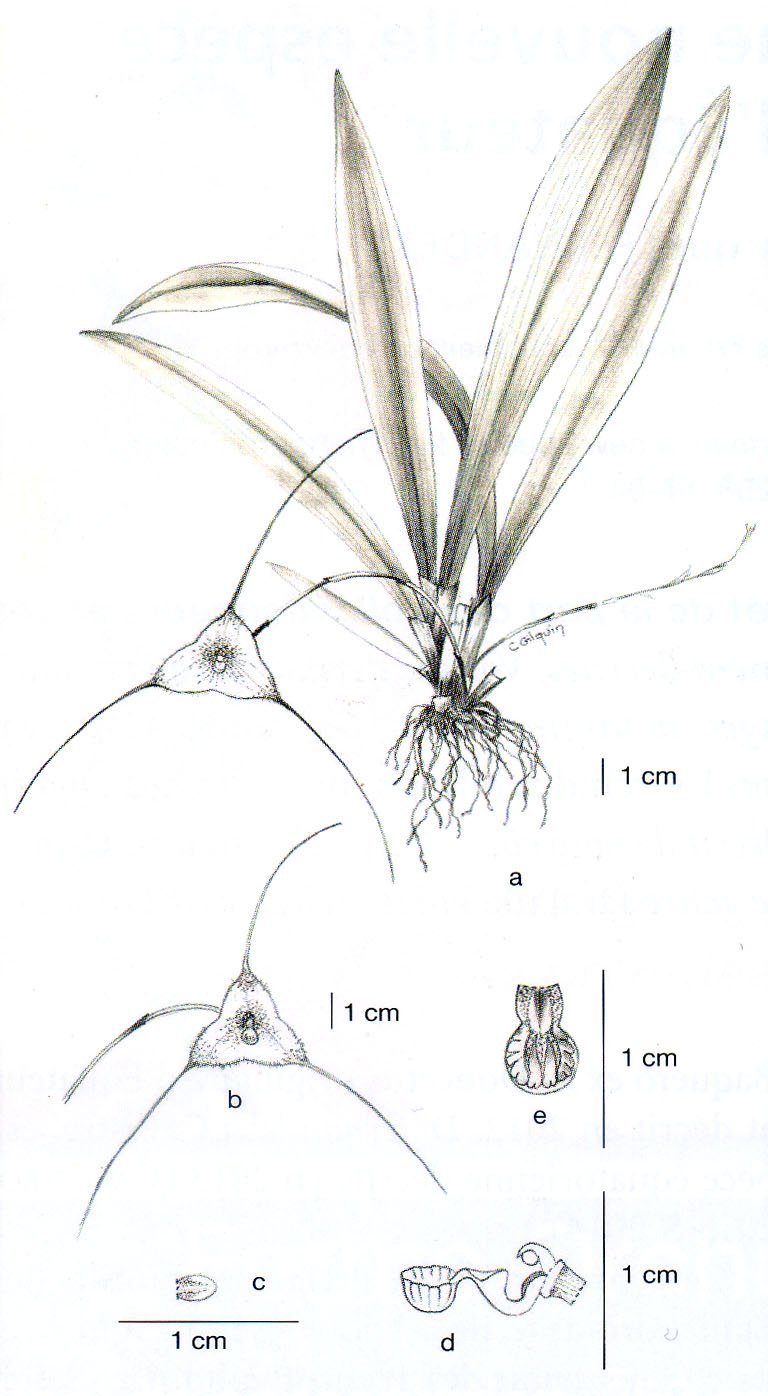 TYPE: Ecuador, Tulcan region, province of Carchi, c. 1 500 rn, epiphytie in cloud forest, 15 November 2011; flowering in culture at Andernos (France), J. Fernandez, December 2013, W. Cavestro LY0010188 (holotype: LY; illustration of type; photos of the plant and flowers that served as the type).