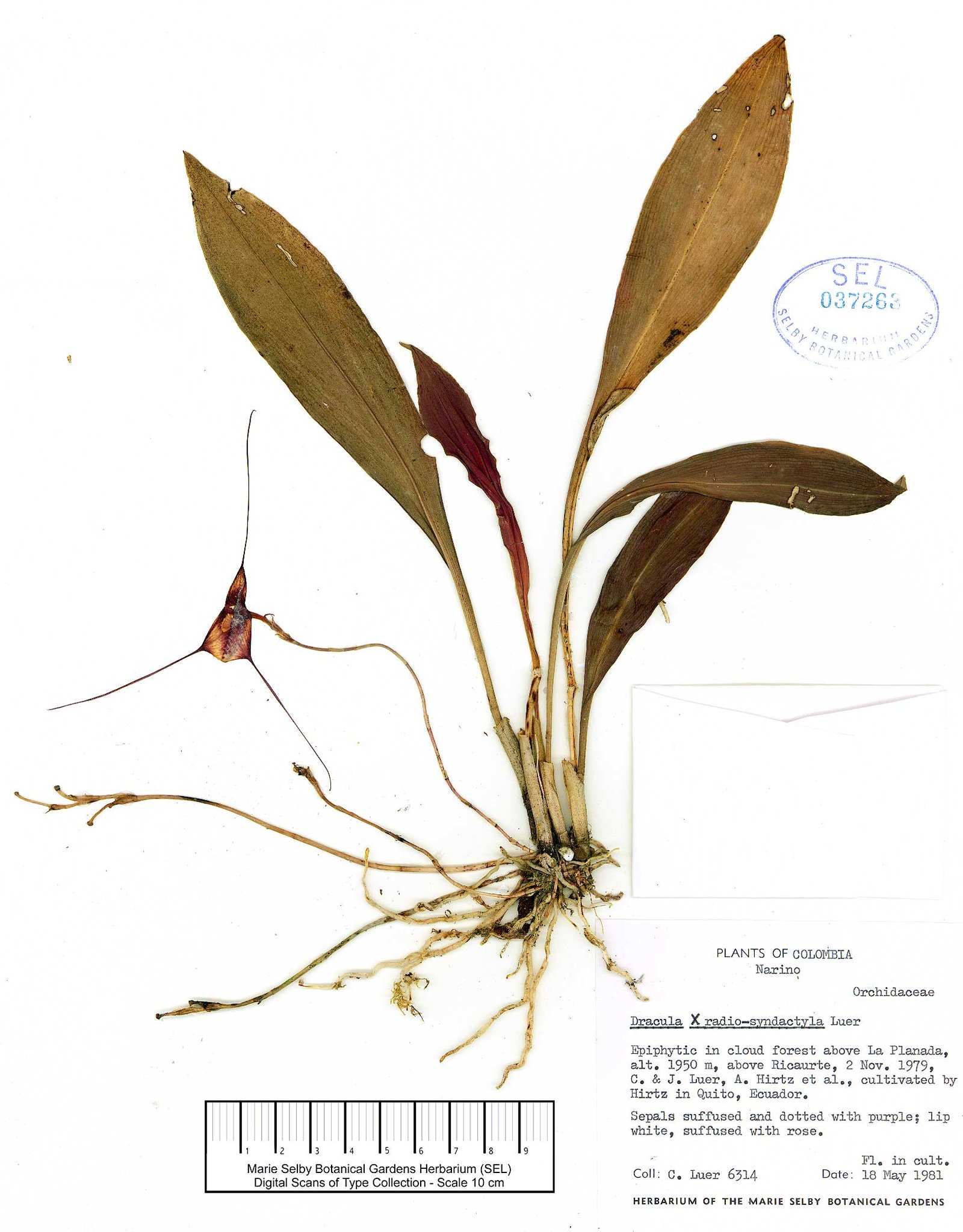 Dracula × radio-syndactyla Luer, Selbyana 5: 389. 1981.