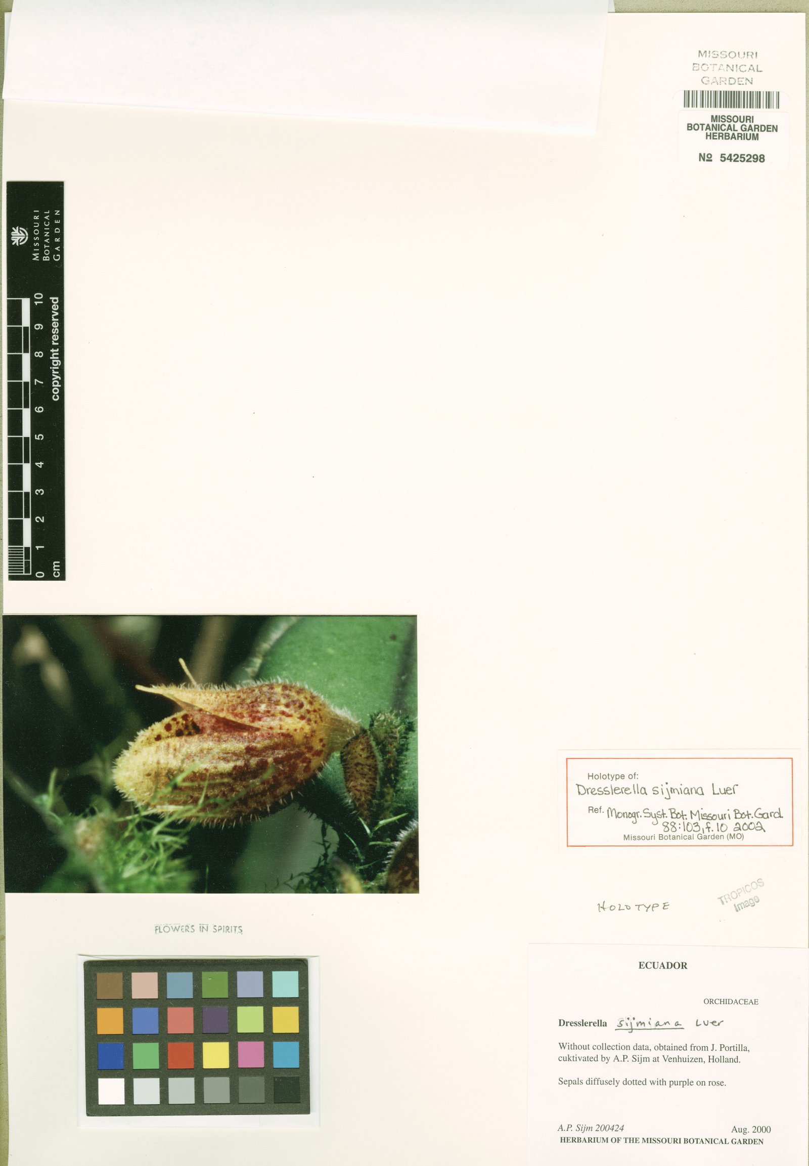 TYPE: Ecuador. Without locality, obtained from José Portilla, cultivated in 2000 in Hem, Venhuizen, Holland, A. P. Sijm 200424 (holotype, MO; drawing of type, MO; illustration of type).