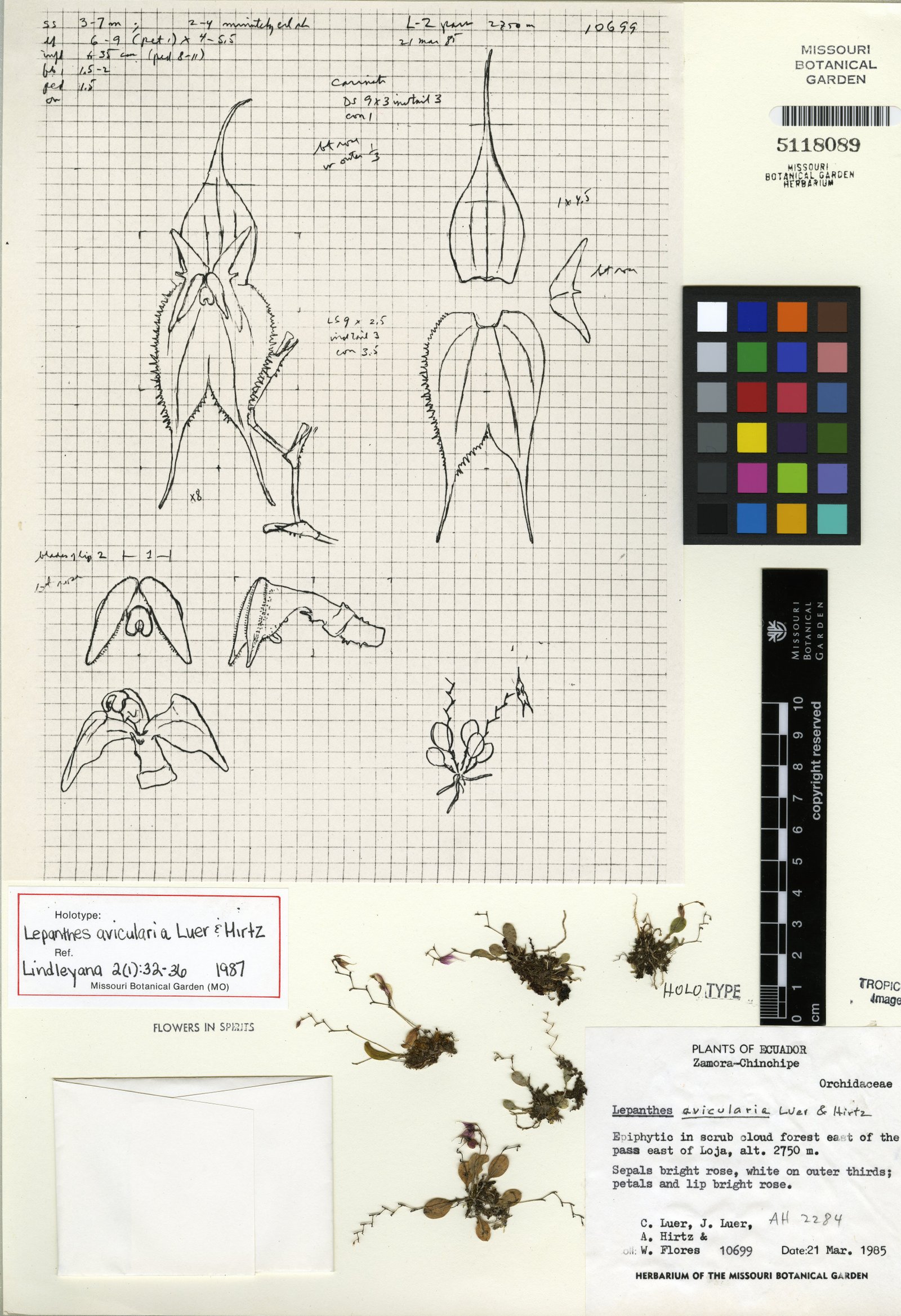 Lepanthes avicularia Luer & Hirtz, Lindleyana 2(1): 32. 1987.