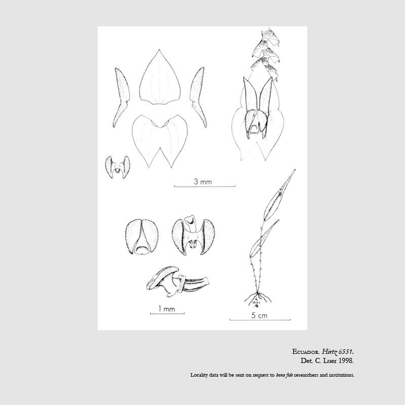 Lepanthes gloris Luer & Hirtz, Monogr. Syst. Bot. Missouri Bot. Gard. 65: 104, f. 272. 1998.