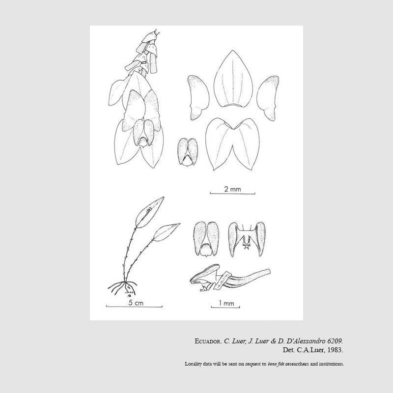 TYPE: Ecuador. Loja: epiphytic in cloud forest south of Yangana, alt. 2450 m, 12 May 1981, C. Luer, J. Luer & D. D'Alessandro 6209 (holotype, SEL; illustration of type).