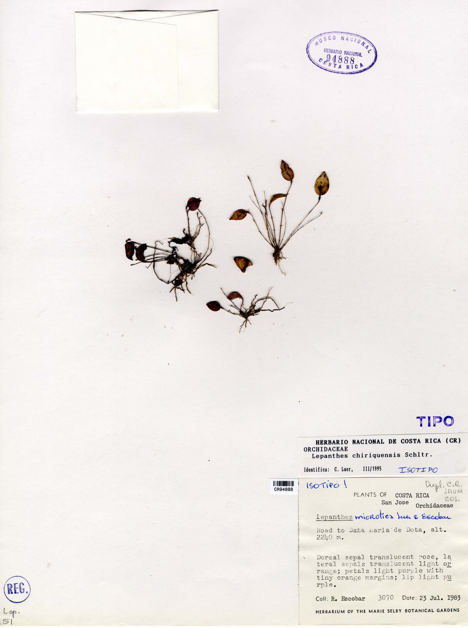 Lepanthes microtica Luer & R. Escobar, Phytologia 55(3): 189-190. 1984.