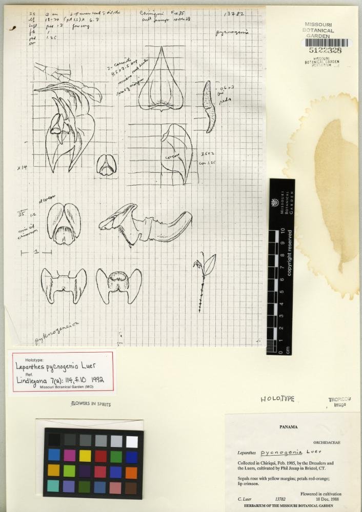 TYPE: Panama. Prov. of Chiriquí collected by R. & K. Dressler & C. & J. Luer in Feb. 1985, flowered in cultivation by P. & A. Jesup in Bristol, CT, 10 Dec. 1988., C. Luer 13782 (holotype, MO; illustration of type).