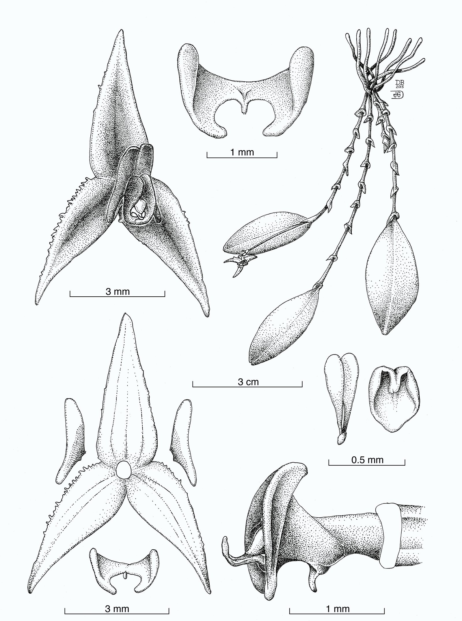 TYPE: Costa Rica. Puntarenas: Buenos Aires, Reserva Biológica Dúrika, sendero después de Bosque Perfecto, 9°18’46.64”N, 83°12’40.14”W, 2377 m, epífita en bosque pluvial premontano, invenit D. Jiménez, E. García, W. Driessen, P. Dubbeldam, F. Nass, J. Riksen et E. Schmidt, 16 enero 2012, floreció en cultivo en el Jardín Botánico Lankester, 27 setiembre 2012, D. Jiménez sub D. Bogarín 9927 (holotype, JBL; illustration of type).