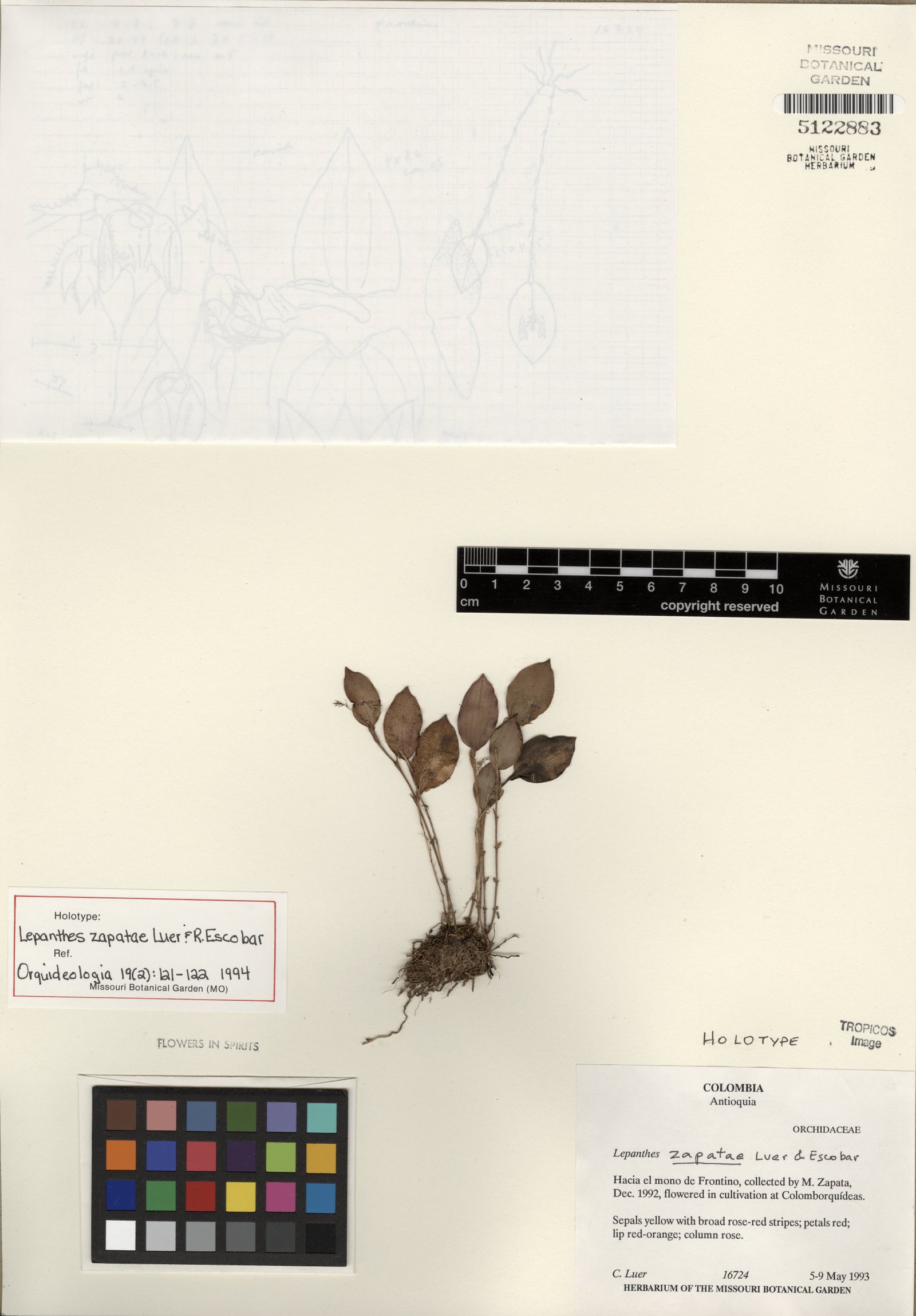 Lepanthes zapatae Luer & Escobar, Orquideología 19(2): 118-122. 1994.
