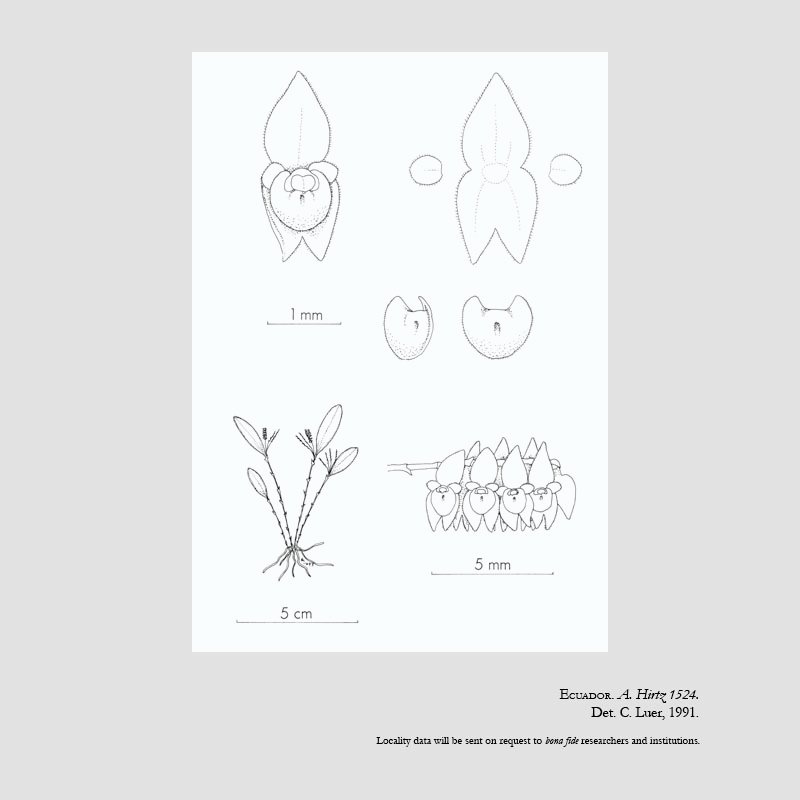 TYPE: Ecuador. Napo: epiphytic in forest between Cotundo and Coca, alt. 1000 m, Feb 1984. A. Hirtz 1524, C. Luer illustration 11697 (holotype, MO).