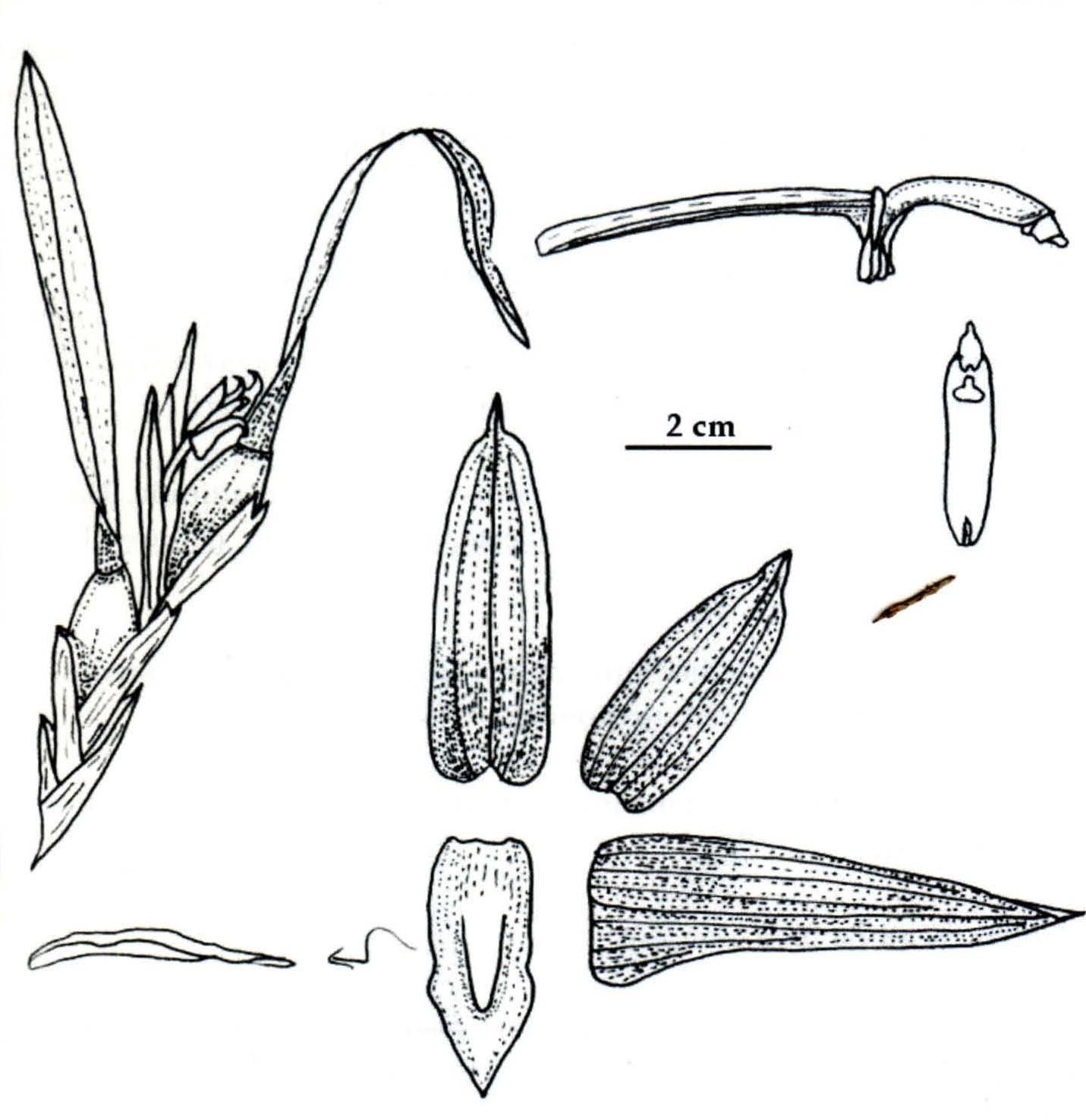 TYPE: Guatemala, Alta Verapaz, Senahu, vers 400 m d'altitude, Hugo et Rolando Pare des, sans date de collecte, floraison en culture, FA-890. (holotype, BIGU; illustration of type; photo of the flowers of the plant used as type).
