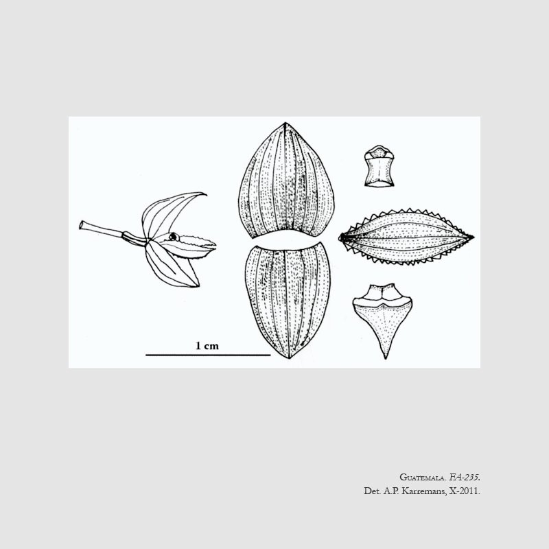 TYPE: Guatemala, Alta Verapaz, Tactic, La cumbre, 1 550 m d'altitude, sur Quercus sapoteifolia (Fagaceae), juin 1987, collecte par Fredy Archila, FA-235. (holotype, BIGU; illustration of type; photo of the flowers of the plant used as type).