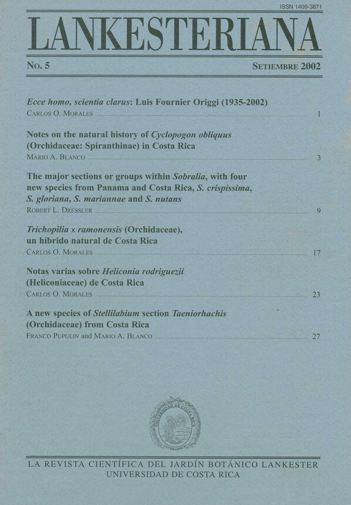 Dressler, R.L. 2002. The major sections or groups within Sobralia, with four new species from Panama and Costa Rica, S. crispissima, S. gloriana, S. mariannae and S. nutans. Lankesteriana 5: 9-15.