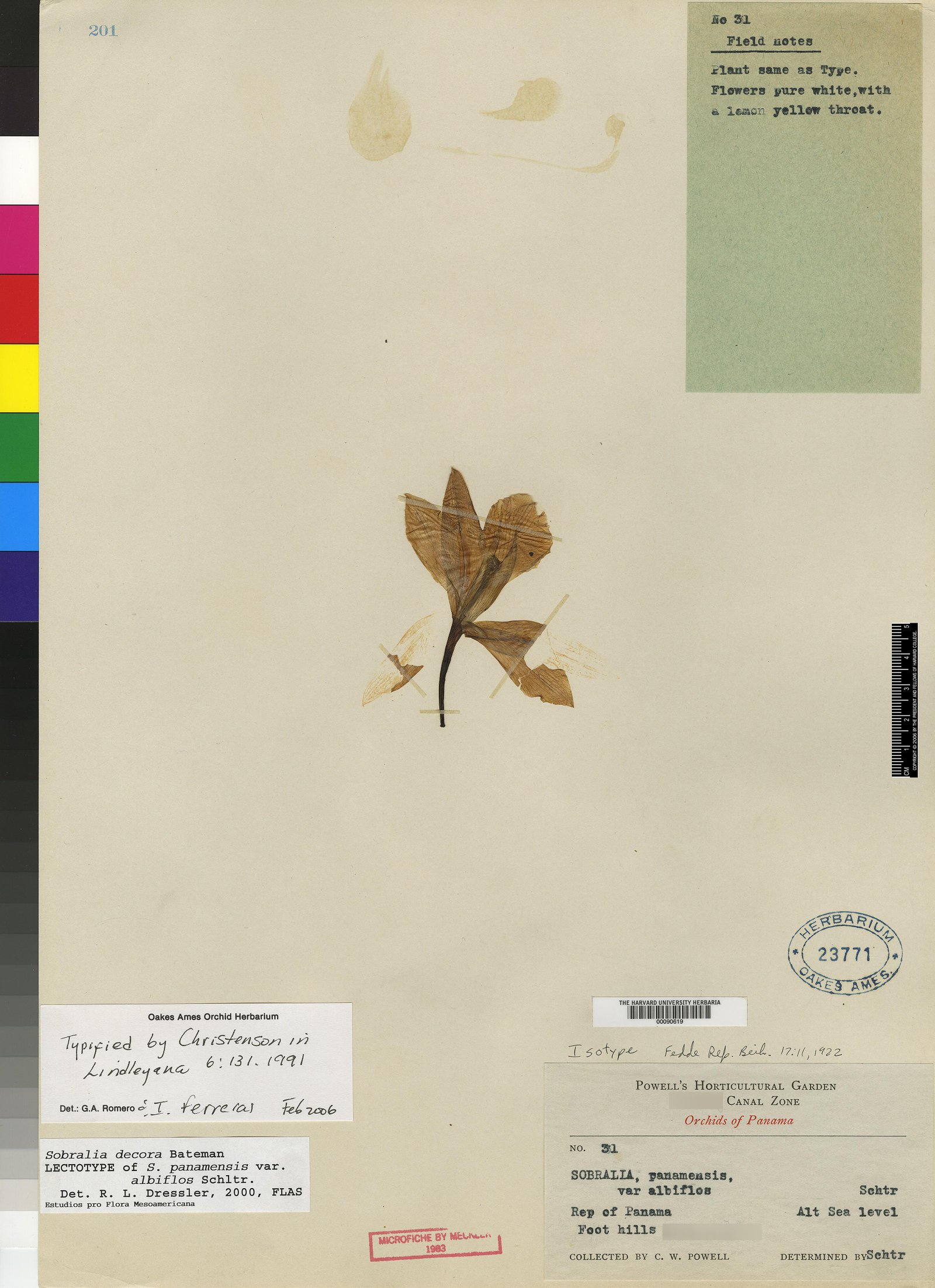Sobralia panamensis Schltr. var. albiflos Schltr., Repert. Spec. Nov. Regni Veg. Beih. 17: 11. 1922.