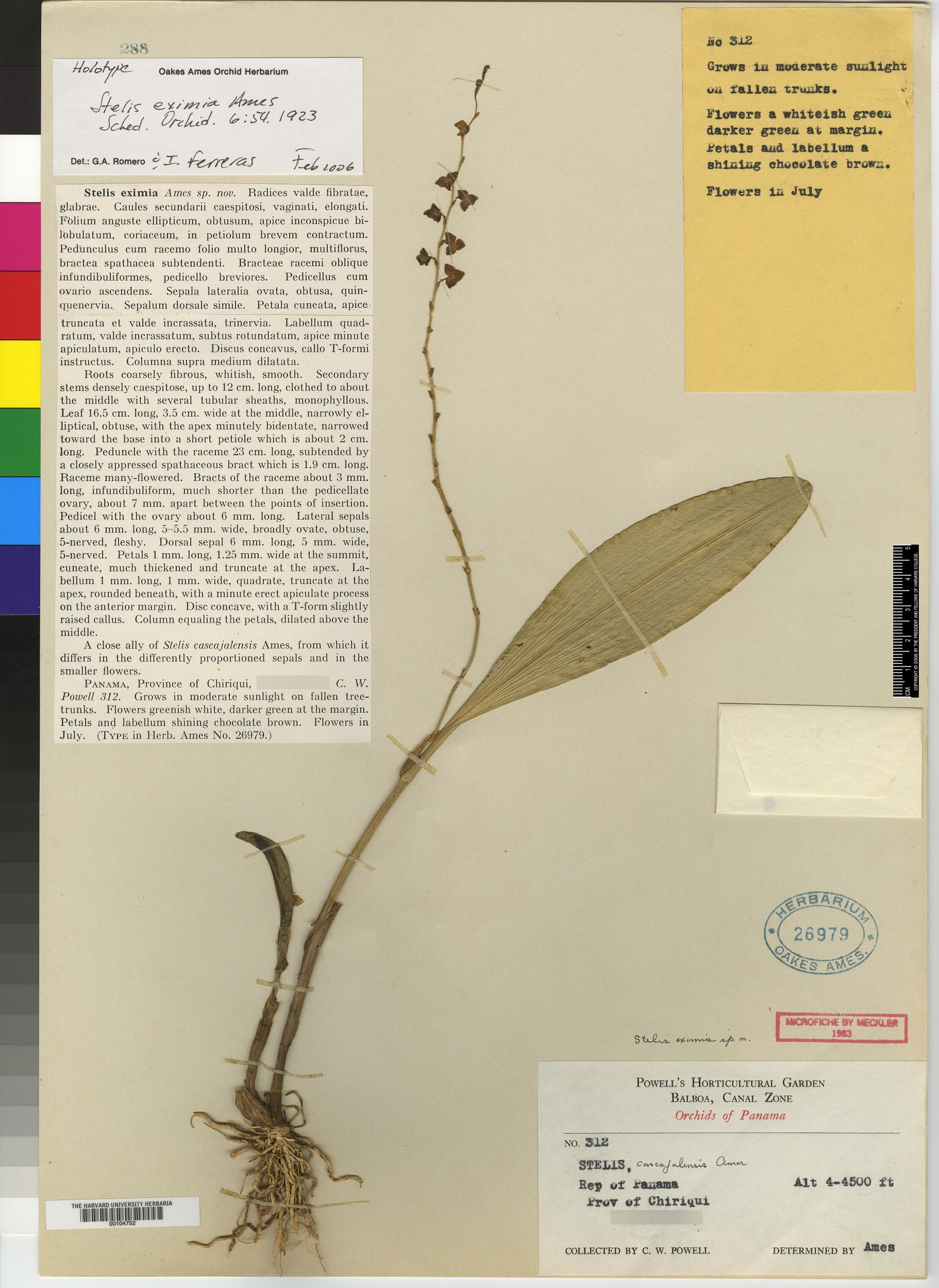Stelis eximia Ames, Schedul. Orch. 6: 54–55. 1923.