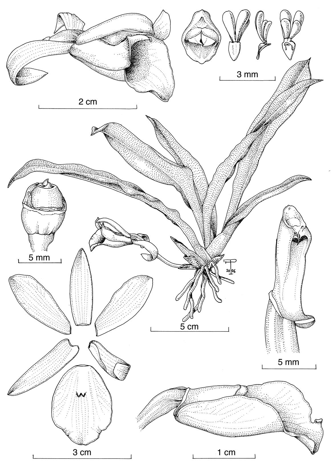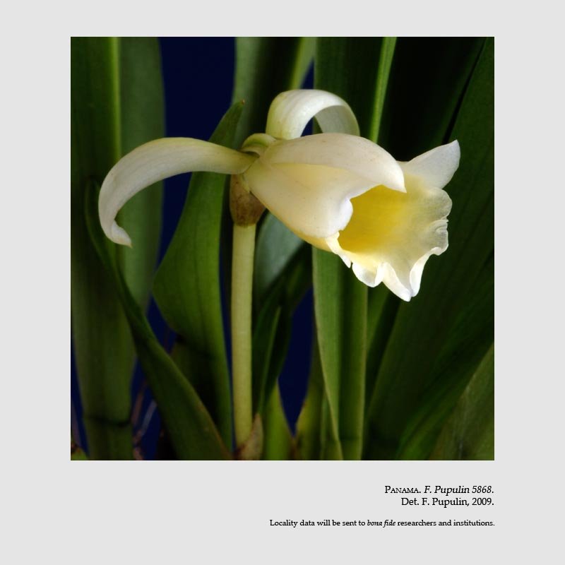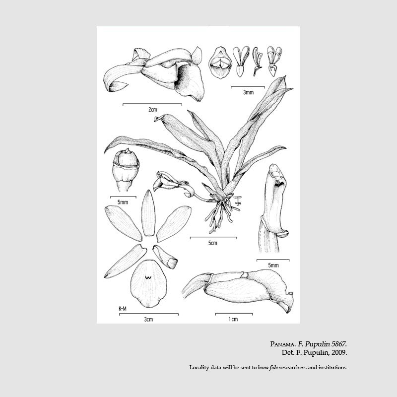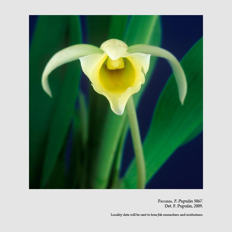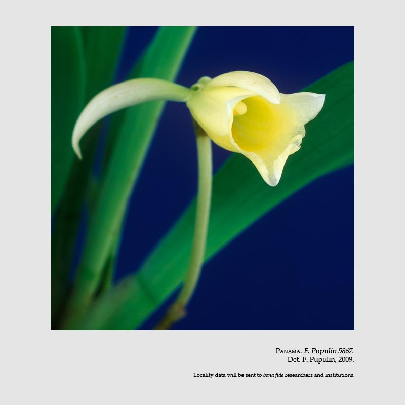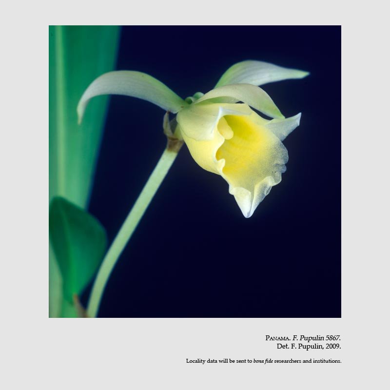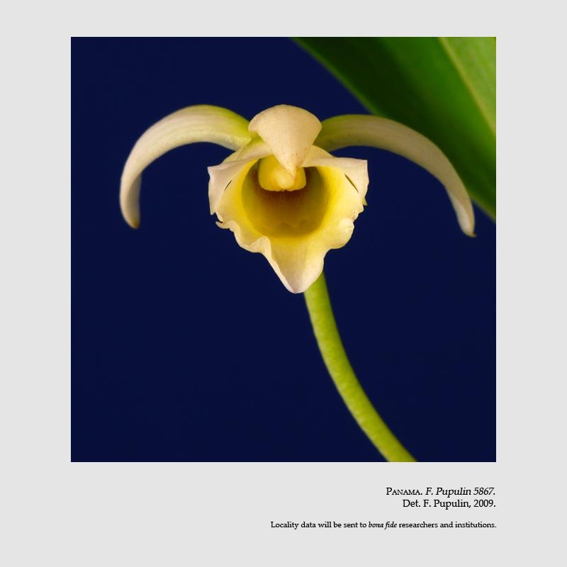 TYPE: Panama. Without exact provenance, cultivated in san Vito de Java, Costa Rica, by W. Chacón at Happy Garden greenhouses, fowered on October 27, 2005, F. Pupulin 5867 (holotype PMA; isotype, JBL; illustration of type; photo of the flower from the plant that served as the holotype).