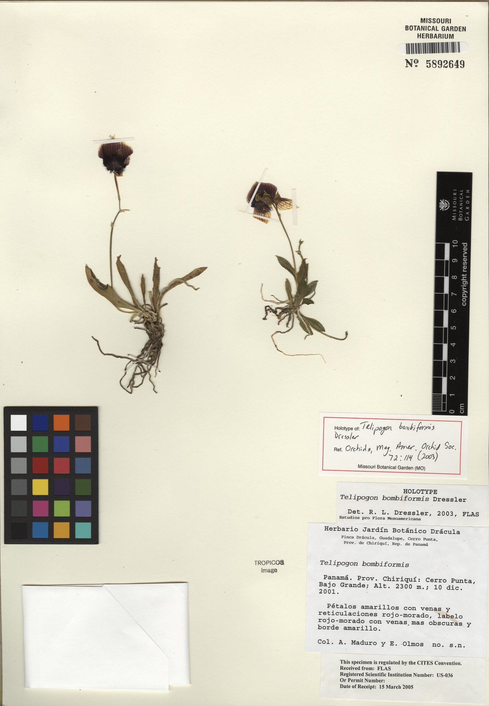 Telipogon bombiformis Dressler, Orchids, Mag. Amer. Orchid Soc. 72(2): 114, photo. 2003.