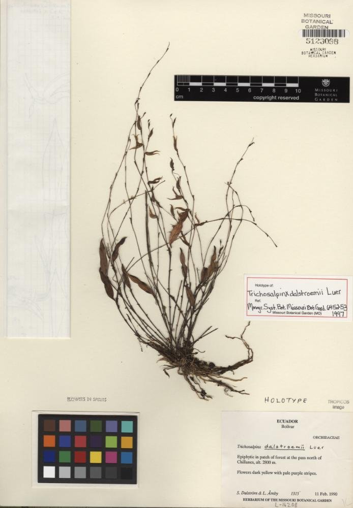 Trichosalpinx dalstroemii Luer, Monogr. Syst. Bot. Missouri Bot. Gard. 64: 52. 1997.