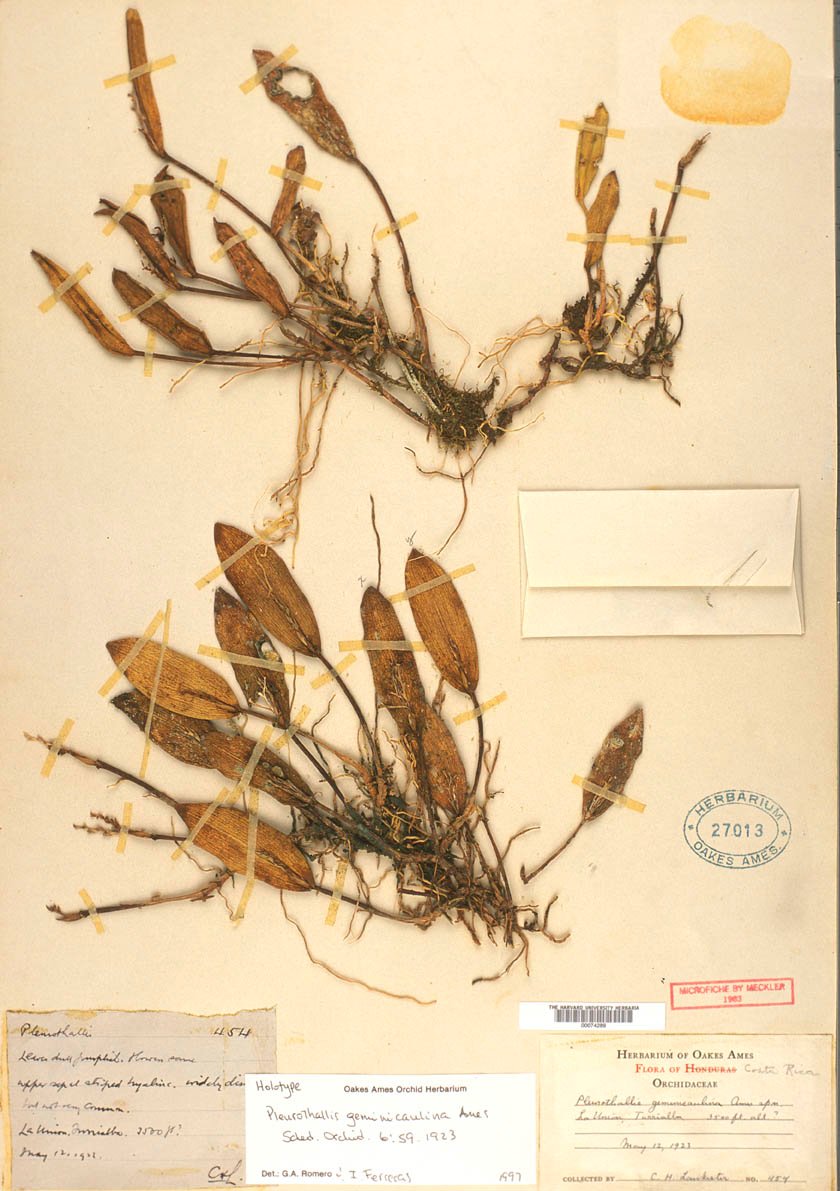 Pleurothallis geminicaulina Ames, Schedul. Orch. 6: 59. 1923.