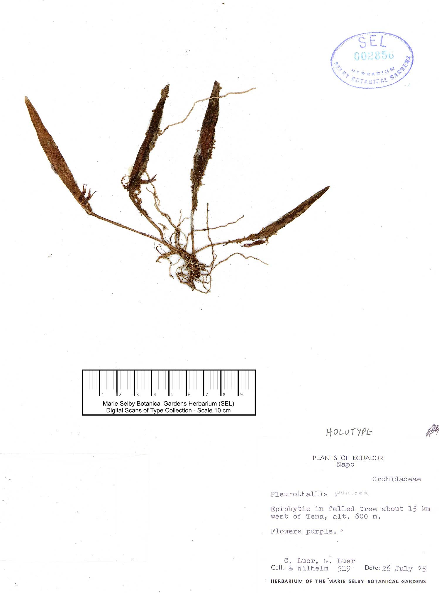 Pleurothallis punicea Luer, Selbyana 1(3): 270, f. 70. 1975.