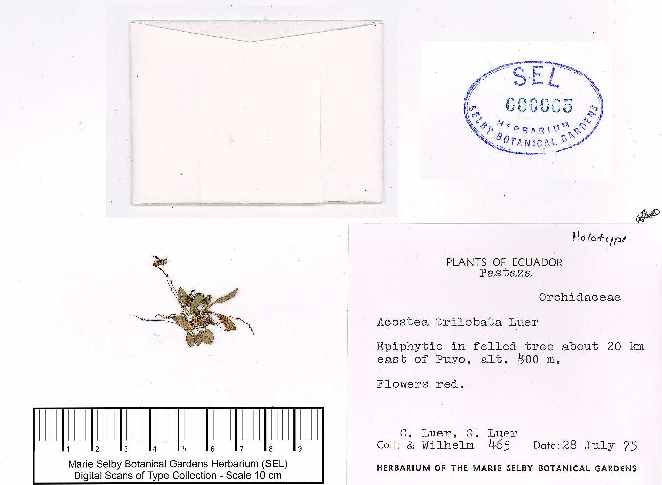Acostaea trilobata Luer, Selbyana 1(3): 216, f. 43. 1975.
