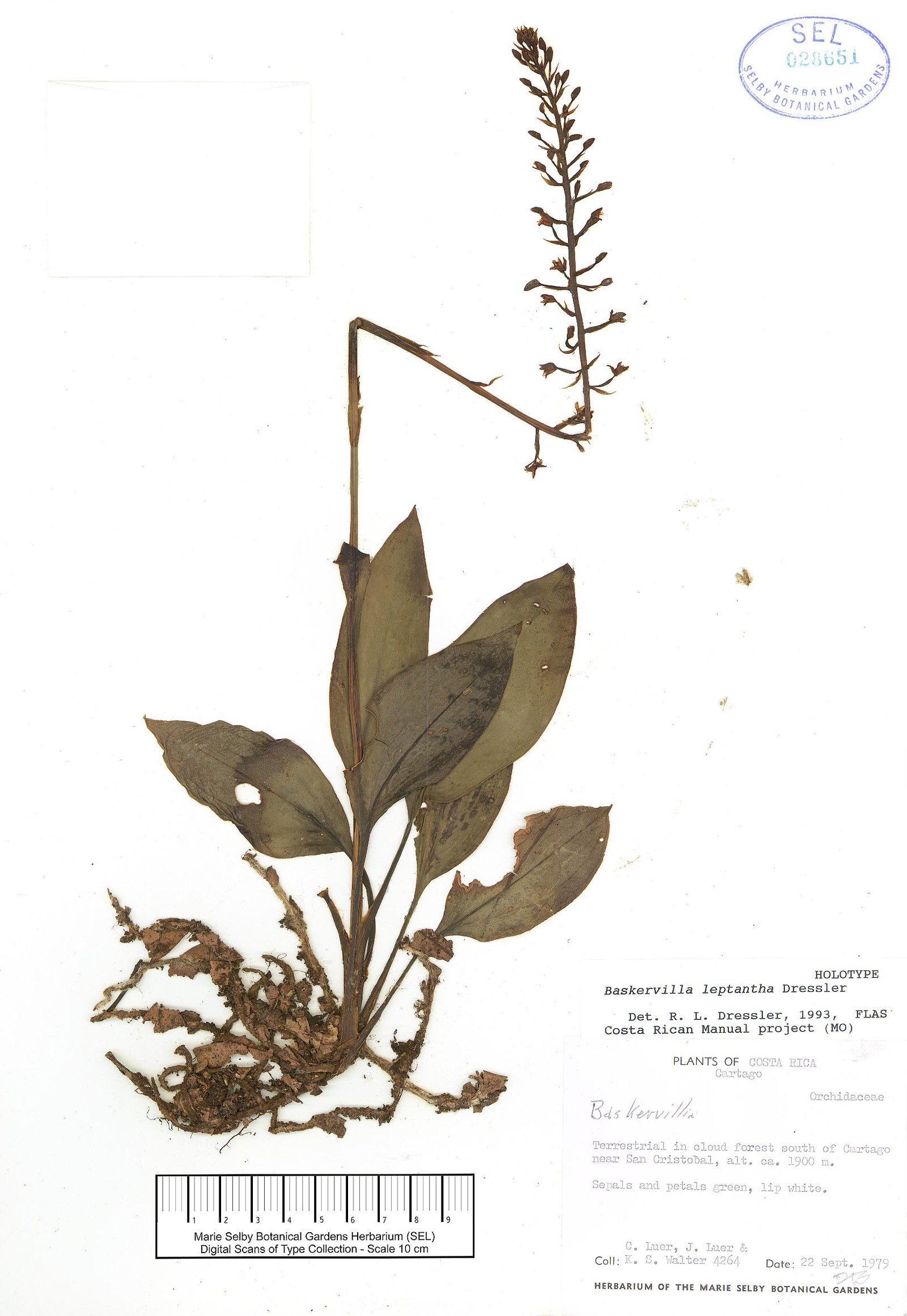 Baskervilla leptantha Dressler, Orquídea (Mexico City), n.s., 13(1-2): 266-267. 1994.