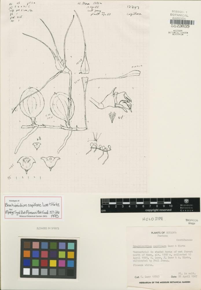 Brachionidium capillare Luer & Hirtz, Monogr. Syst. Bot. Missouri Bot. Gard. 57: 26. 1995.