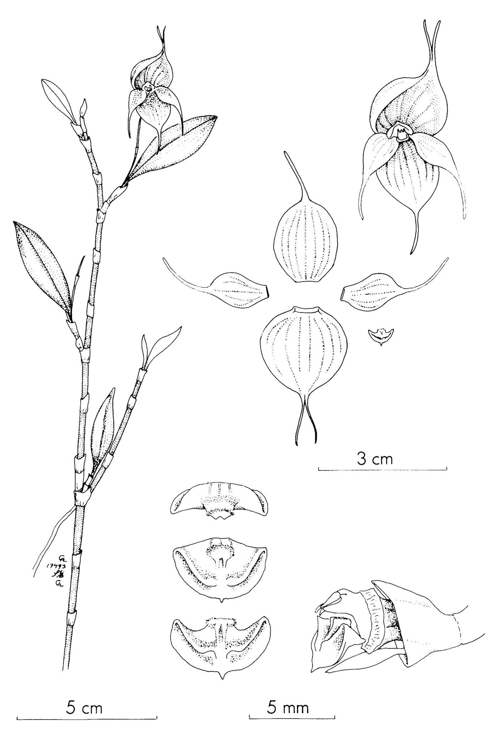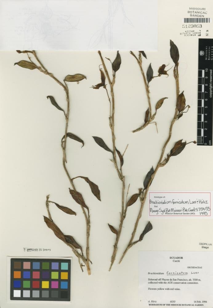 Brachionidium fornicatum Luer & Hirtz, Monogr. Syst. Bot. Missouri Bot. Gard. 57: 54. 1995.