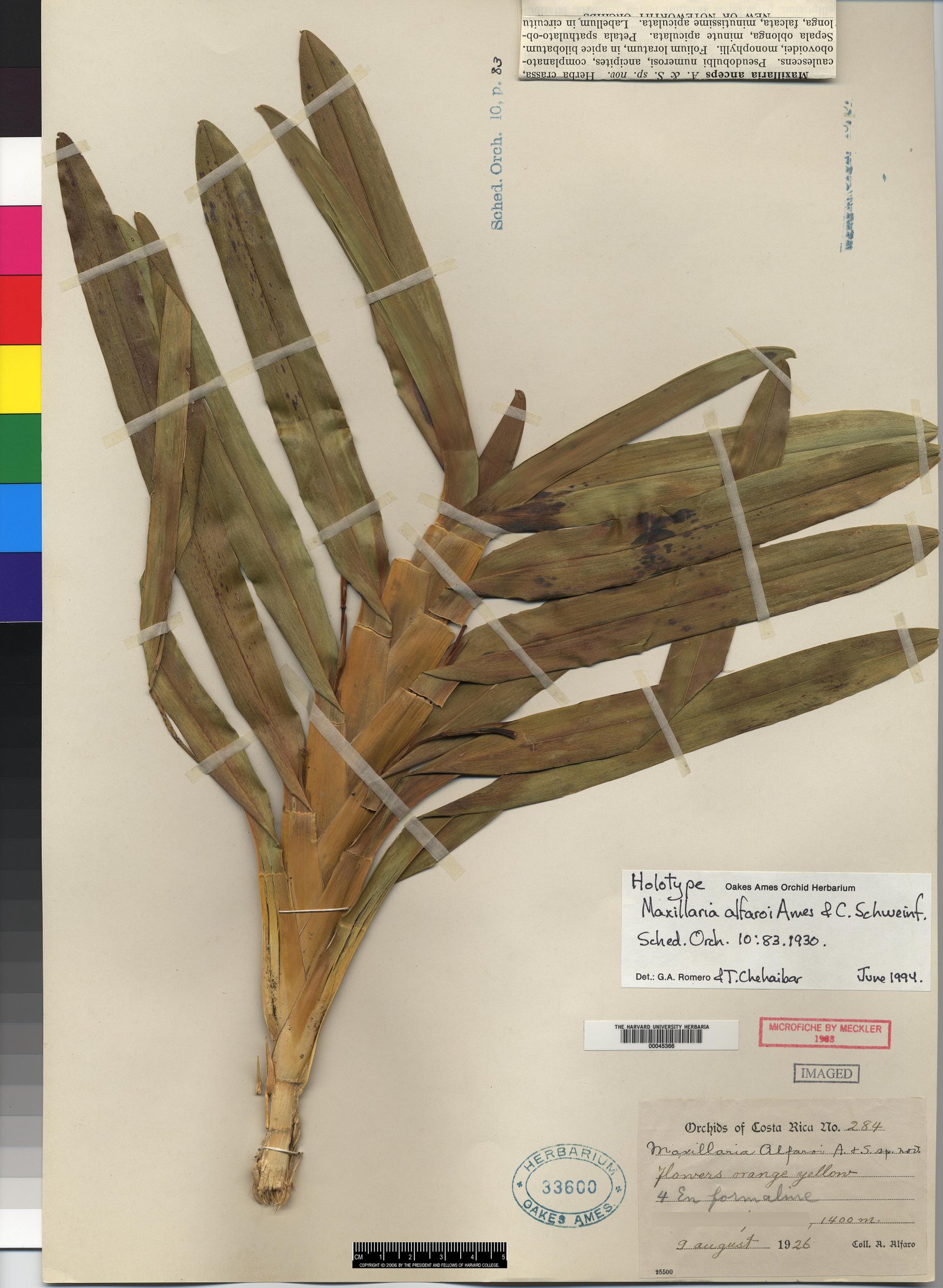 Maxillaria alfaroi Ames & C. Schweinf., Schedul. Orch. 10: 83-84. 1930.