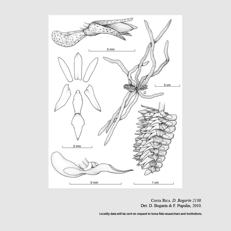 TYPE: Costa Rica. San José: Pérez Zeledón, San Isidro de El General, Palmares, growing on Citrus sp. in disturbed area, 9?19'15"N, 83?39'44"W, 600 m, collected by Jorge Cambronero, flowered in cultivation in the garden of J. Cambronero at Palmares de San Isidro del General, February 2005, flowers in spirit, D. Bogarín 2130 (holotype, JBL-spirit; isotype, CR; illustration of type).