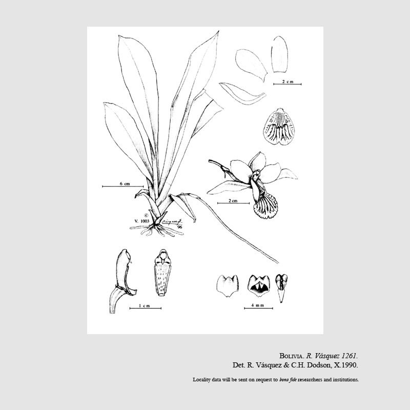 TYPE: Bolivia. Cochabamba: Provincia Carrasco, Sehuencas, 2250 m, 14 Enero 1988, R. Vásquez, C. Luer, & J. Luer 1003 (holotype, LPB; isotype, Herb. Vasquezianum-spirit; illustration of type).