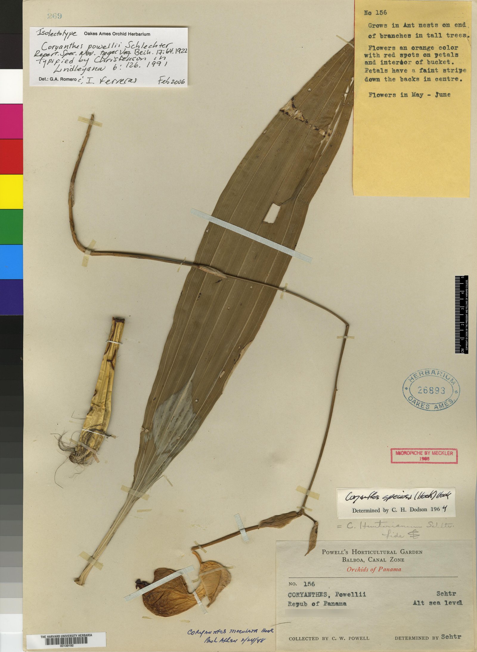 Coryanthes powellii Schltr., Repert. Spec. Nov. Regni Veg. Beih. 17: 64–65. 1922.