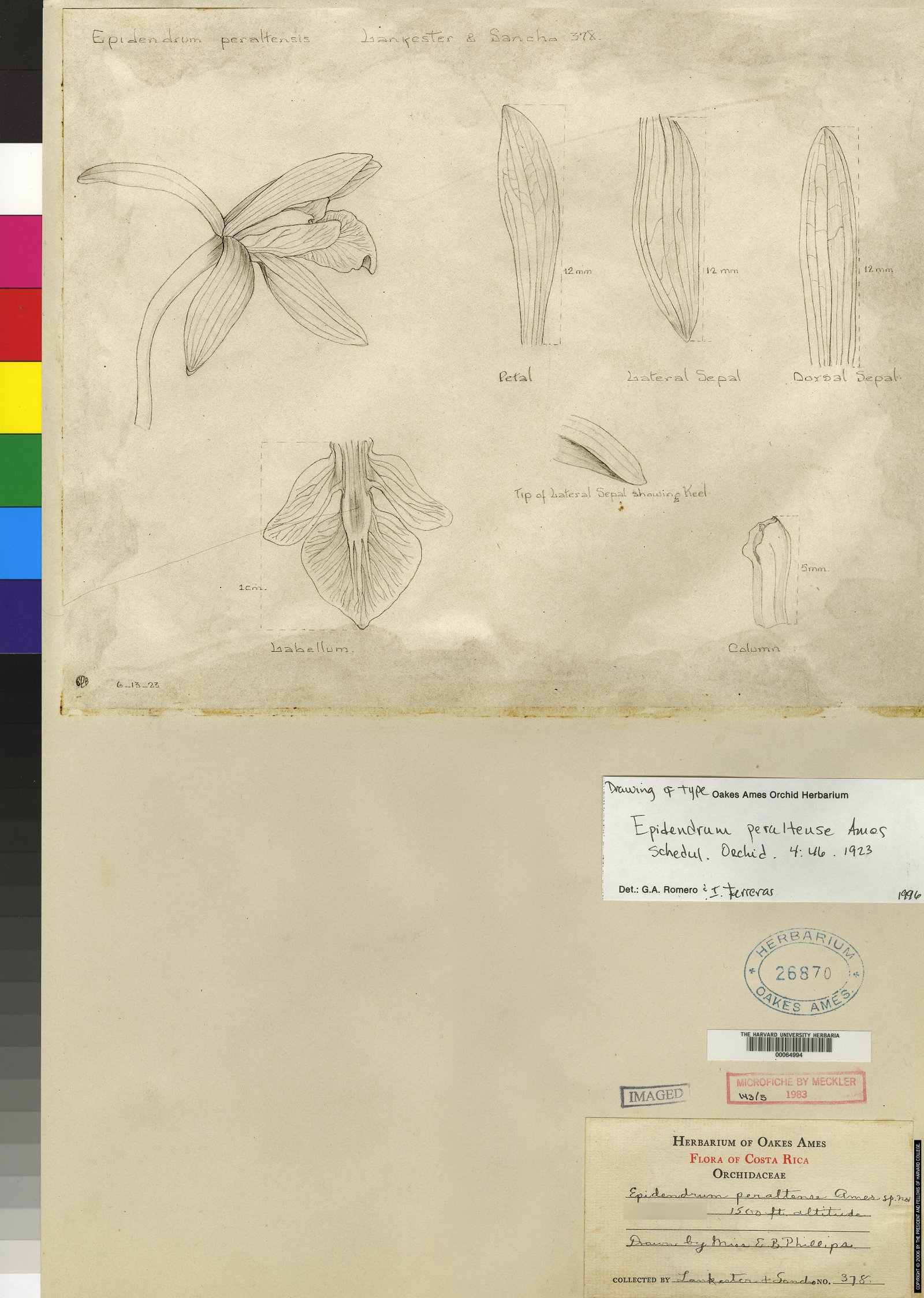 Bas.: Epidendrum peraltense Ames, Sched. Orch. 4: 46. 1923. TYPE: Costa Rica. [Cartago. Turrialba], Peralta, alt 1500 ft, C.H. Lankester & A. Sancho 378 (holotype, AMES, detail of inflorescence; illustration of type, AMES).
