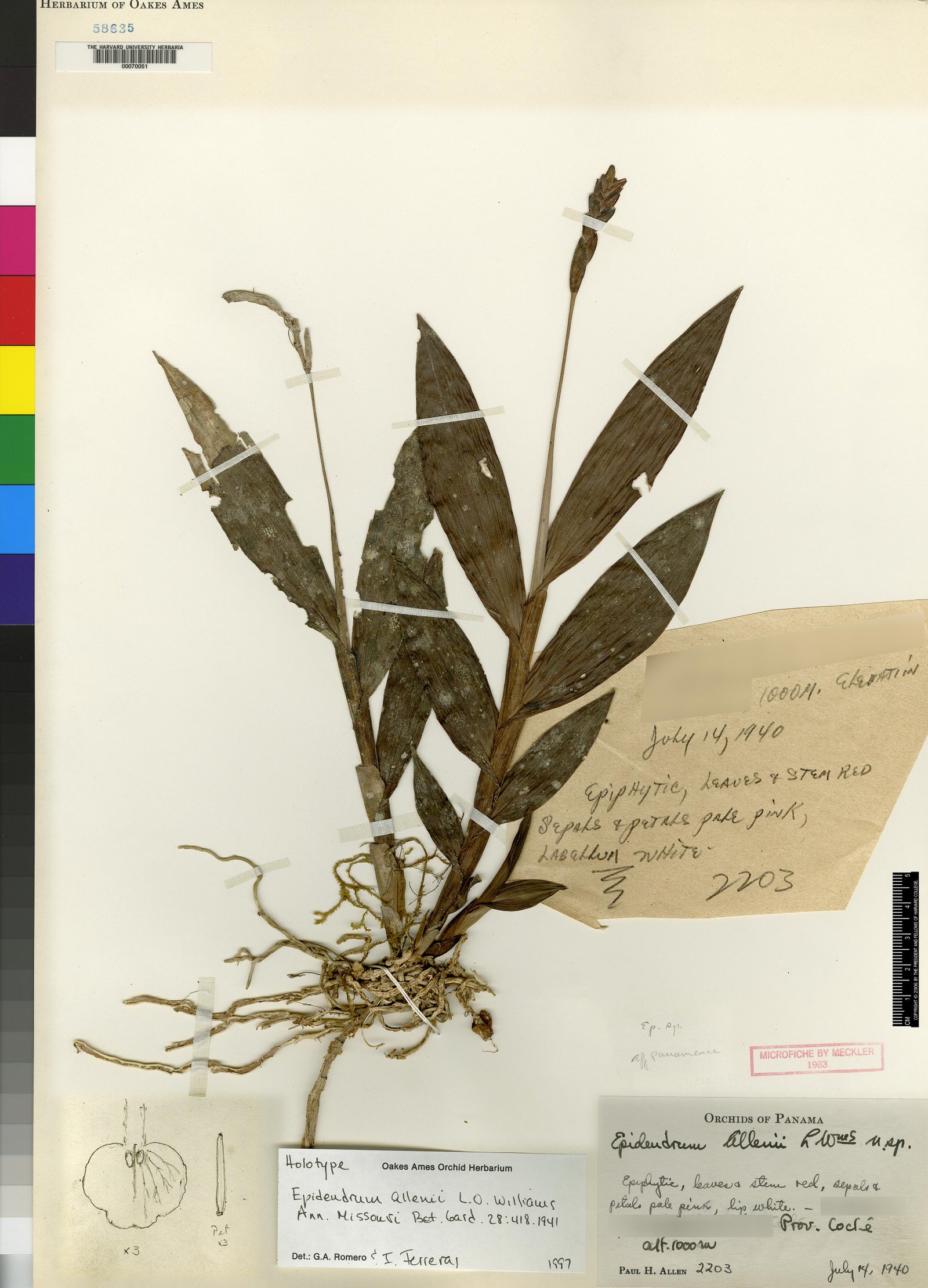 Epidendrum allenii L.O. Williams, Ann. Missouri Bot. Gard. 28(4): 418-419, pl. 22, f. 3-5. 1941.