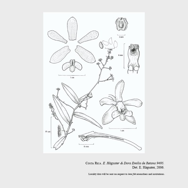 TYPE: Costa Rica. Cartago: Rt. 2, km 36.5, arriba de la Cangreja, antes de San Cristóbal Norte, 1910 m, 28 Jun. 1988, E. Hágsater & Dora Emilia de Retana 9495 (holotype, INB; isotype, AMO-flowers in spirit; illustration of type).