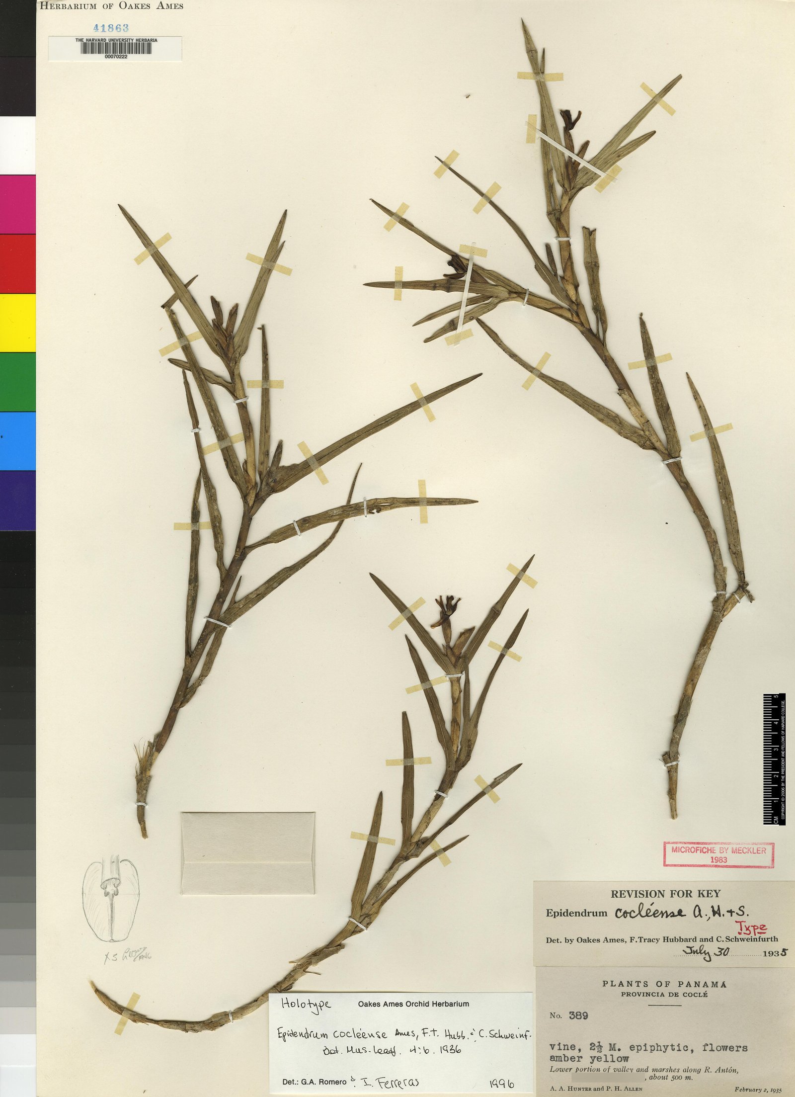Epidendrum cocleense Ames, F.T. Hubb. & C. Schweinf., Bot. Mus. Leafl. 4(1): 6–7. 1936.