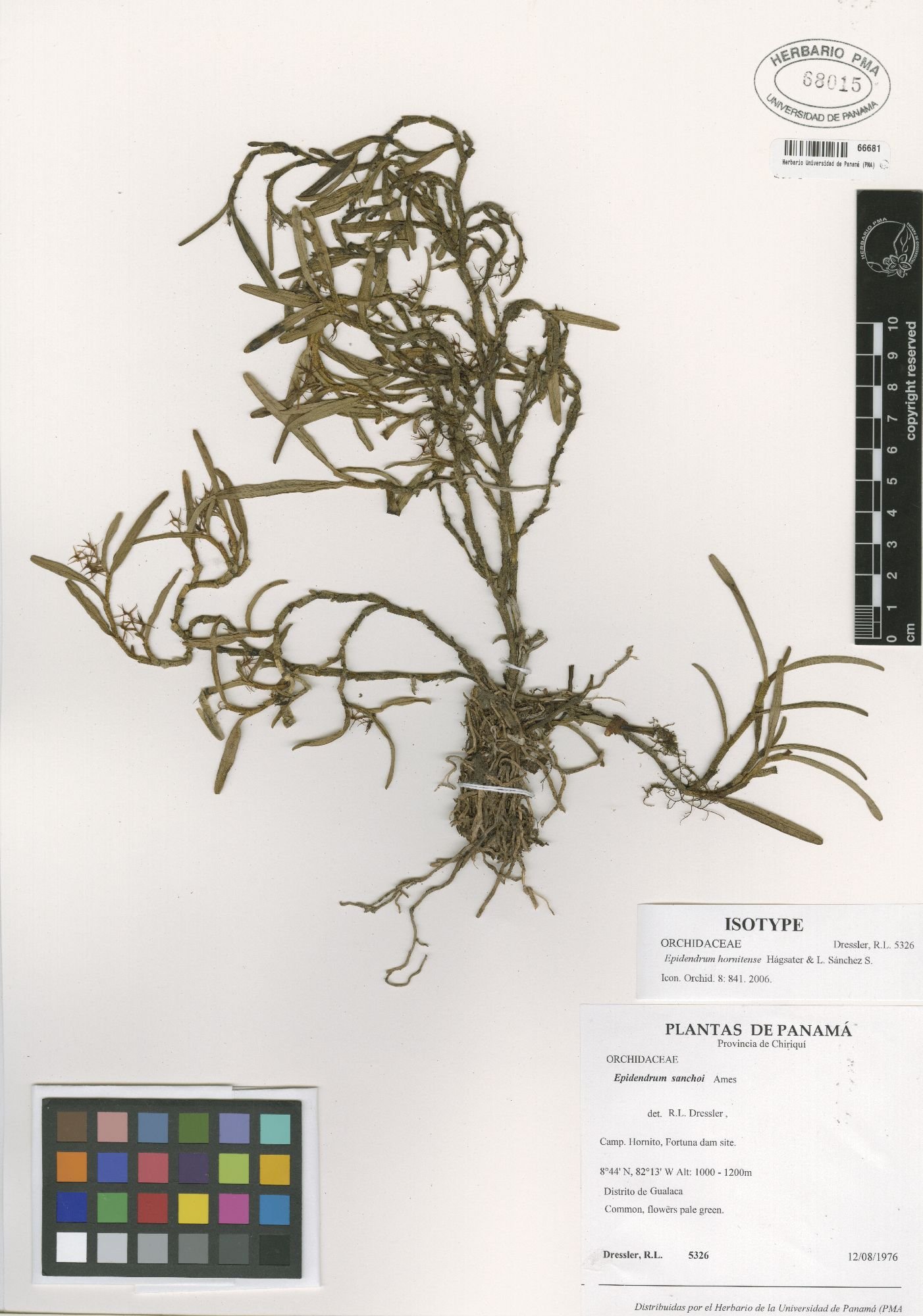 TYPE: Panama. Chiriqui: Camp Hornito, Fortuna Dam site, 8º44'N 82º13'W, 1000-1200 m, 12 Aug 1976, R.L. Dressler 5326 (holotype, AMO-2324; isotype, PMA).