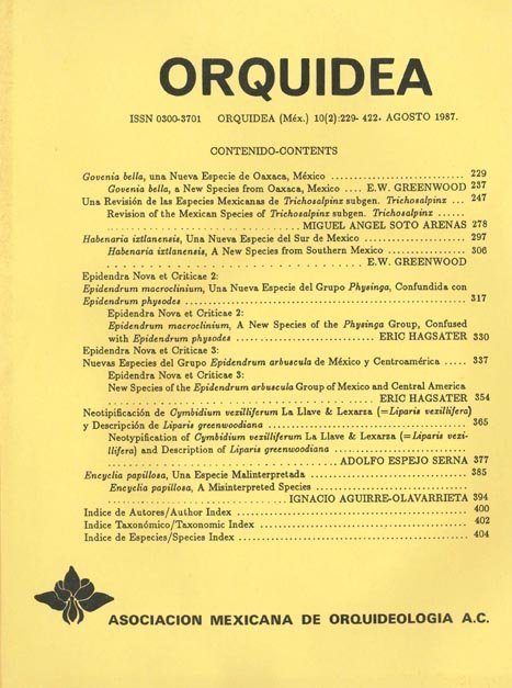 Hágsater, E. 1987. Epidendra nova et criticae 2: Epidendrum macroclinium, una nueva especie del grupo Physinga confundida con Epidendrum physodes. Orquídea (Méx.) 10(2) 317-336.