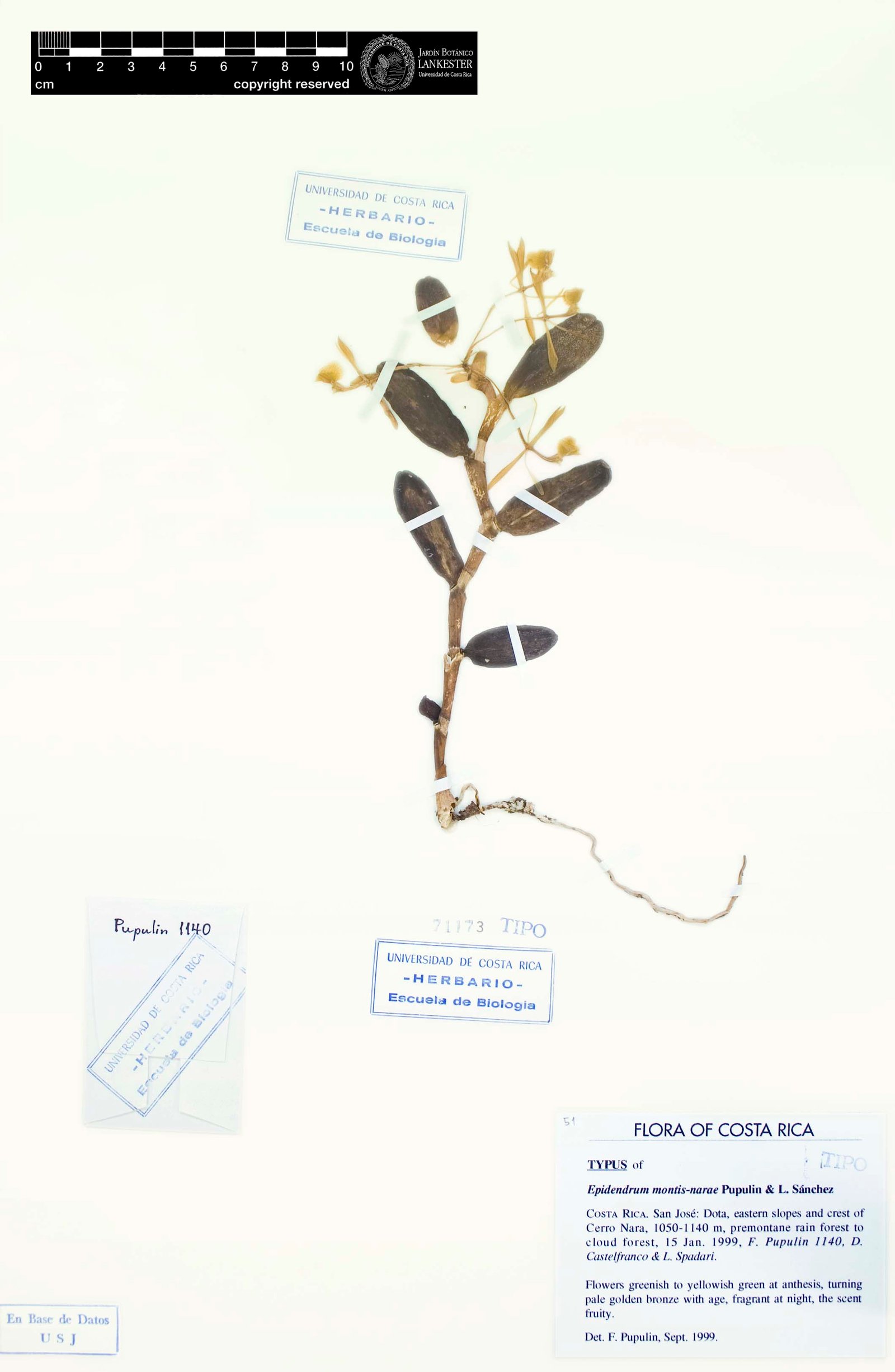 TYPE: San Jose: Dota, eastern slopes and crest of Cerro Nara, 1050-1140 m, premontane rain forest to cloud forest, 15 Jan 1999, F. Pupulin 1140, D. Castelfranco & L. Spadari (holotype, USJ; clonotype, AMO; drawing of type).