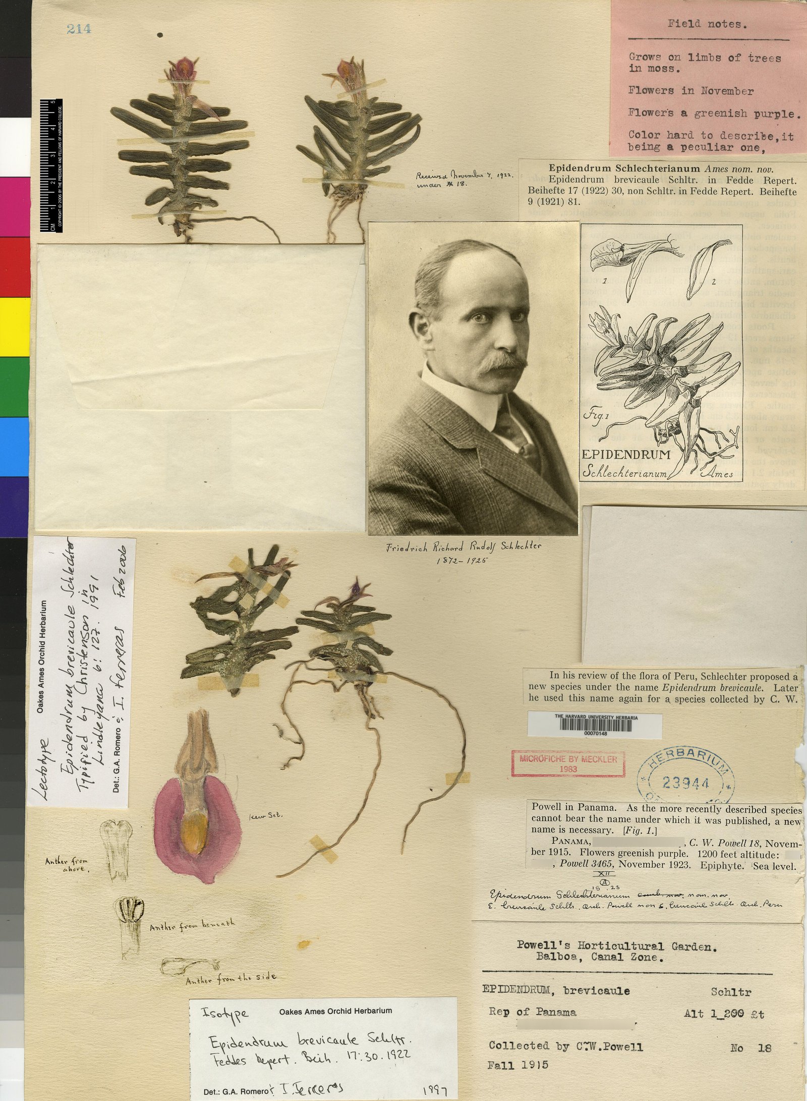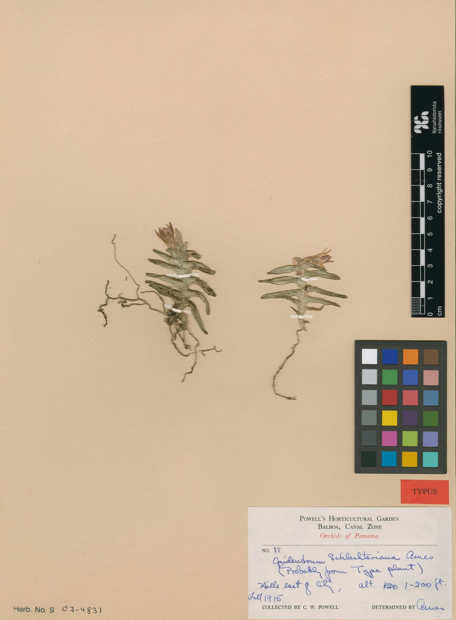 TYPE: Panama. hills east of the [PanamaJ City, at sea level, C. W. Powel/18 (holotype, B, destroyed, lectotype designated by Christenson (1991), AMES; isolectotypes, K, MO, S; illustration of type, lectotype superfluously designated by Santiago & Hágsater (2007)).