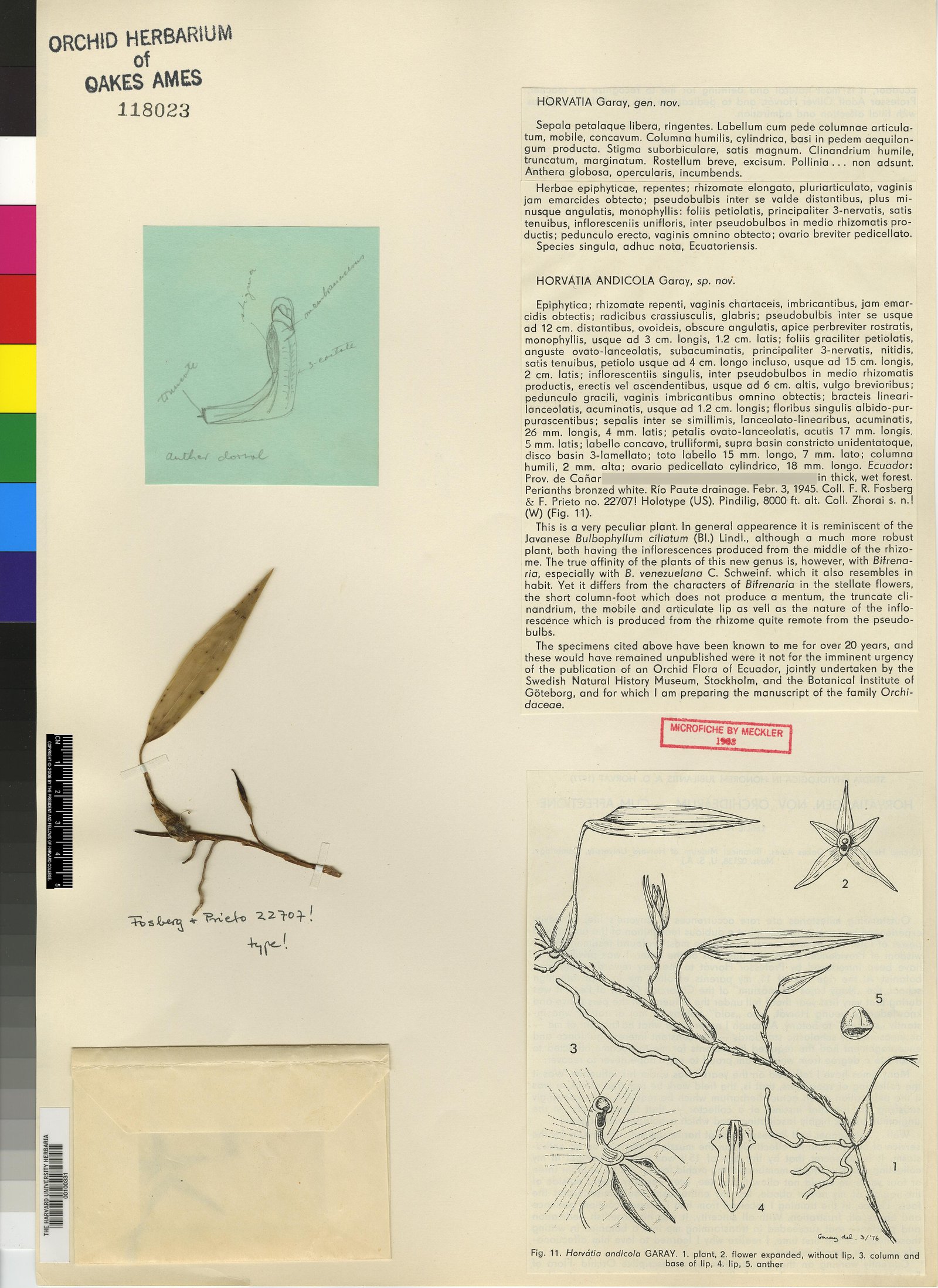 Horvatia andicola Garay, Studia Phytologica 39. 1977.