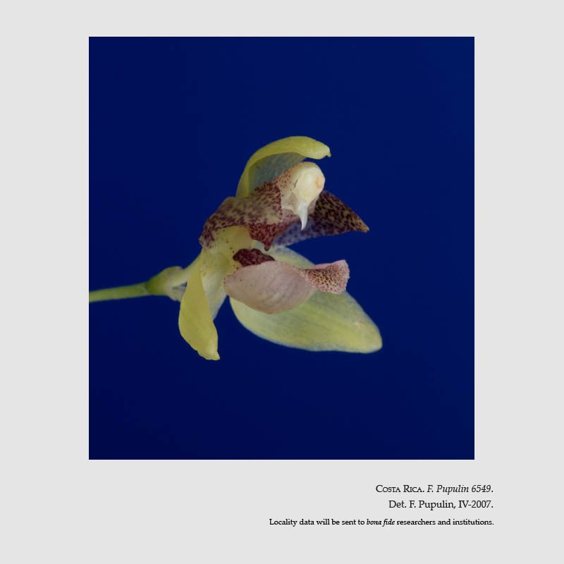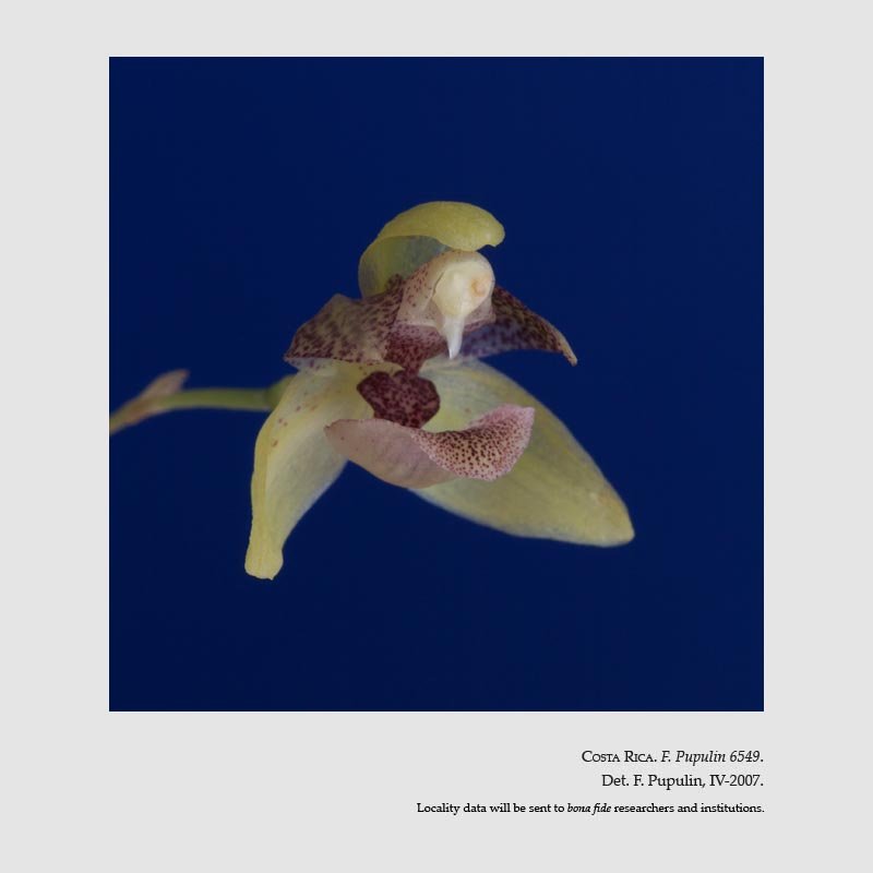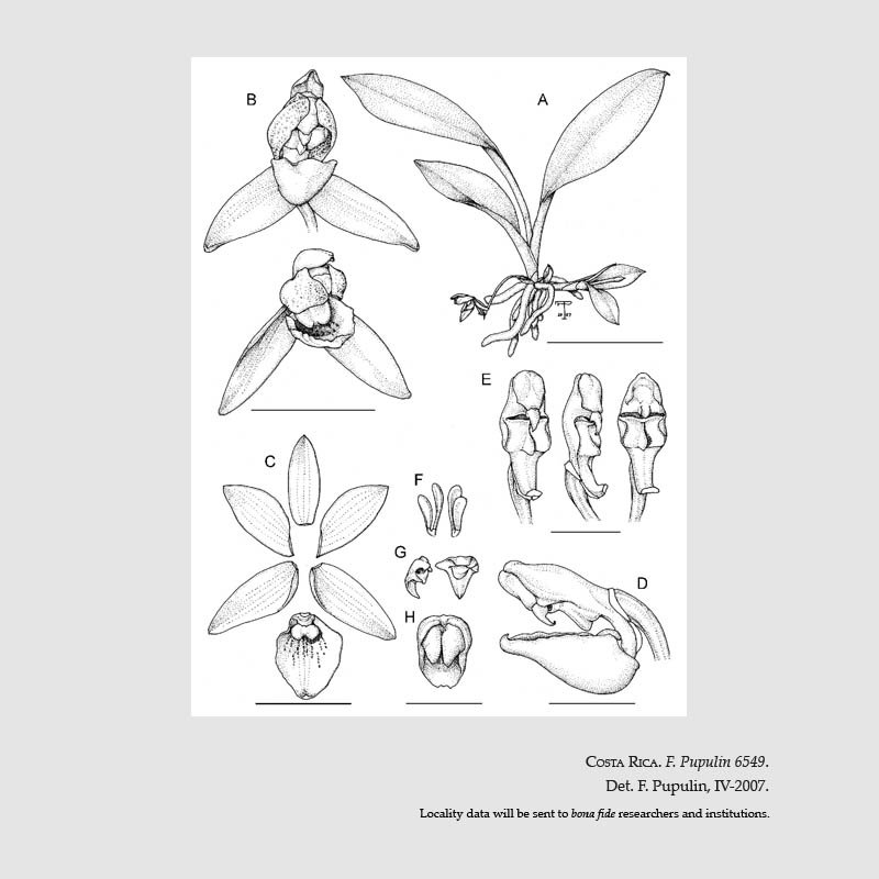 TYPE: Costa Rica. Preserved from a plant in flower cultivated by A. Alfaro H. and originally collected in January 2006 by Alberto Rodríguez in Costa Rica, Alajuela, San Carlos, Río Cuarto, La Españolita, 4 km N of Santa Rita, 10°26'34''N, 84°11'73''W, 200 m, epiphytic on slender tree, c. 2.5 m from the soil, growing in shade close to a stream, 23.4.2007, F. Pupulin 6549 (holotype, CR [spirit]); illustration of type).
