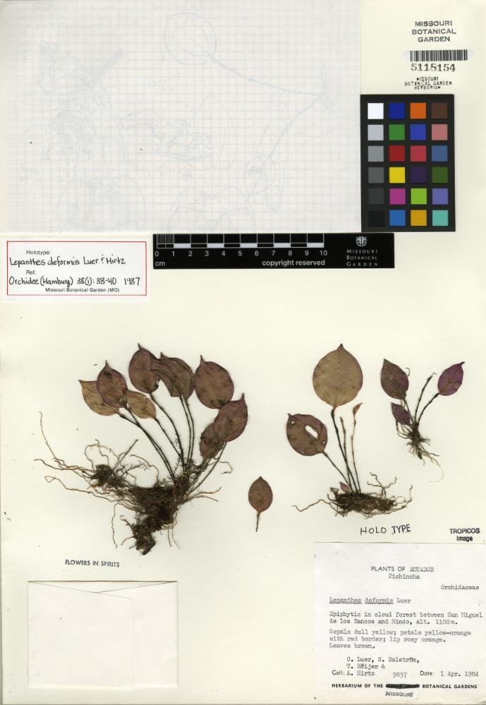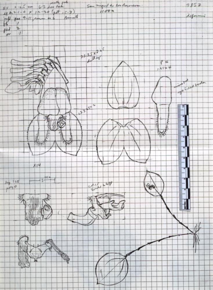 TYPE: Ecuador. Pichincha: epiphytic above San Miguel de los Bancos, alt. 1100 m, 1 April 1984, C. Luer, A. Hirtz, S. Dalström, T. Hoijer & J. Kuijt 9857 (holotype, MO; illustration of type, MO; illustration of type; photo of the flower from the type).