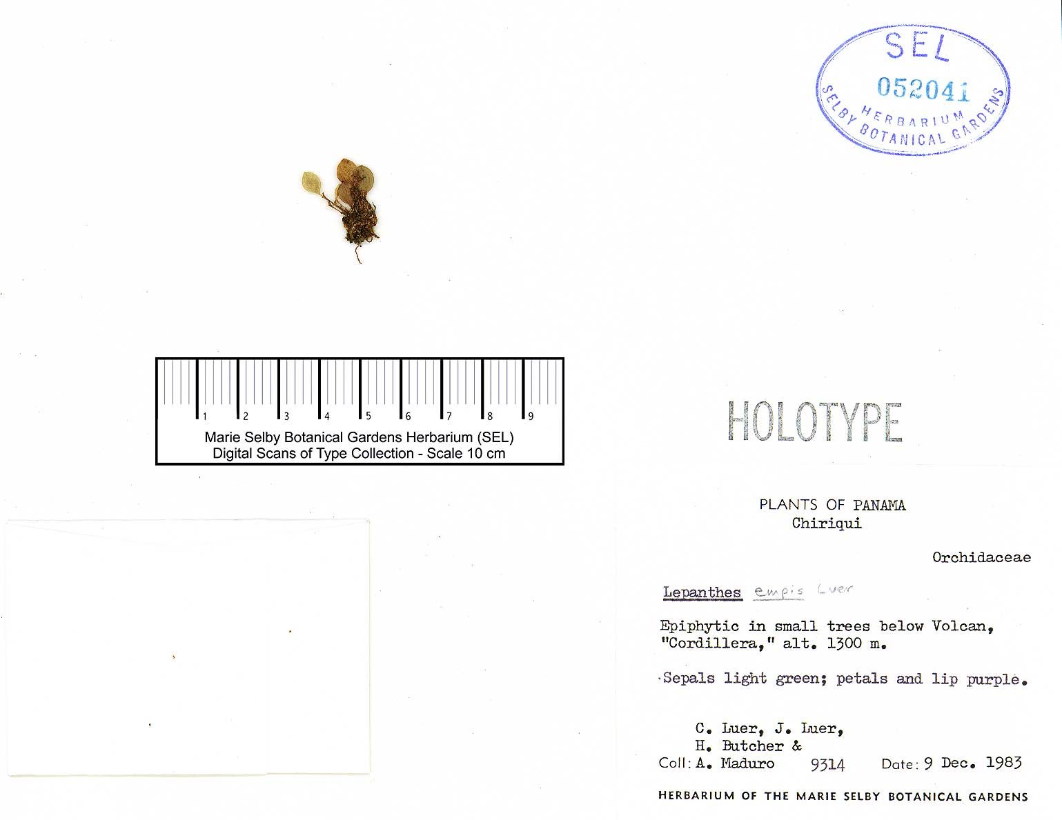 TYPE: Panama. Prov. of Chiriquí: epiphytic in small trees near Volcan, "La Cordillera," alt. 1300 m, 9 Dec. 1983, C. Luer, J. Luer, A. Maduro & H. Butcher 9314 (holotype, SEL; illustration of type).