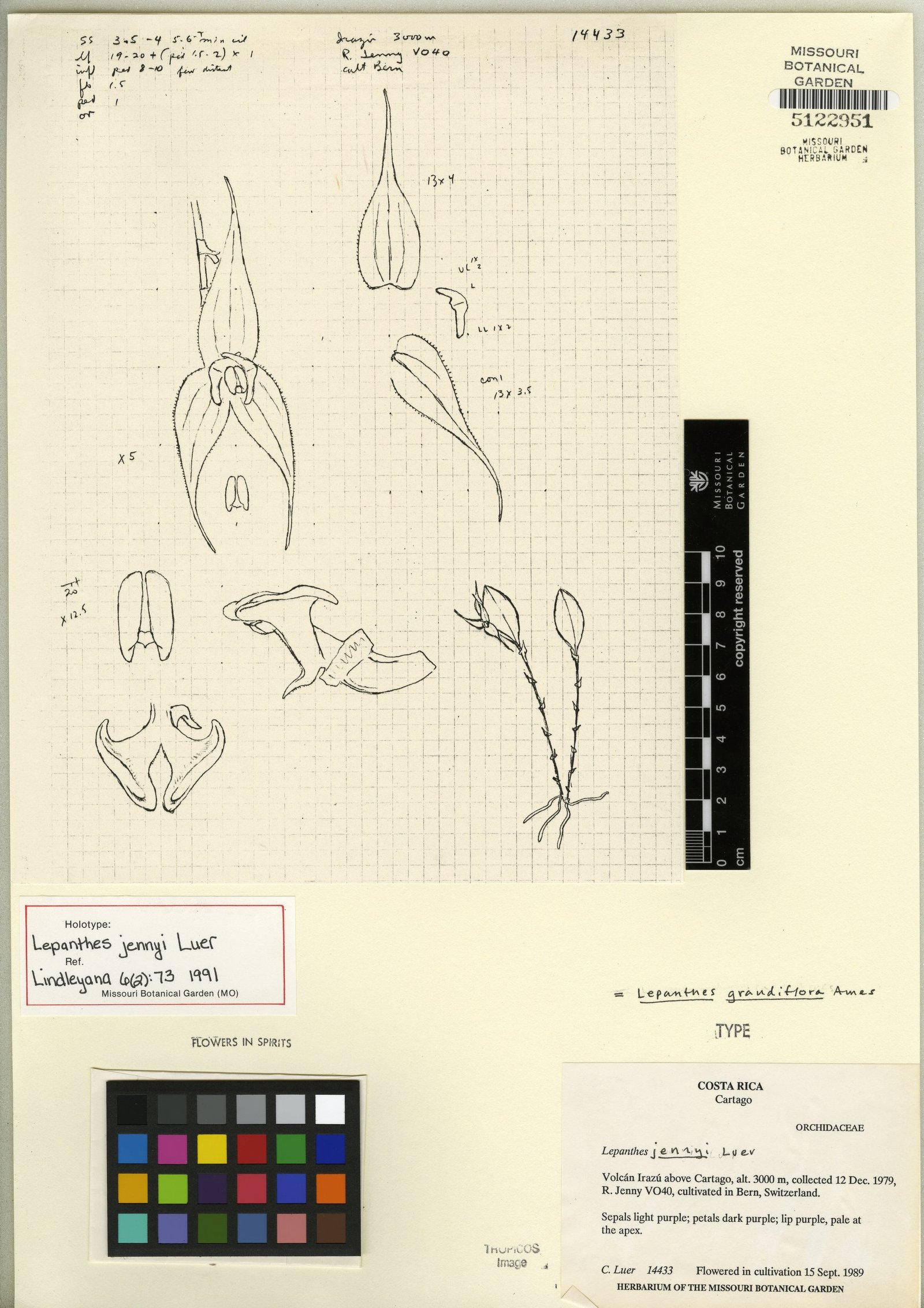 Lepanthes grandiflora Ames & C. Schweinf., Schedul. Orch. 10: 44-45. 1930.