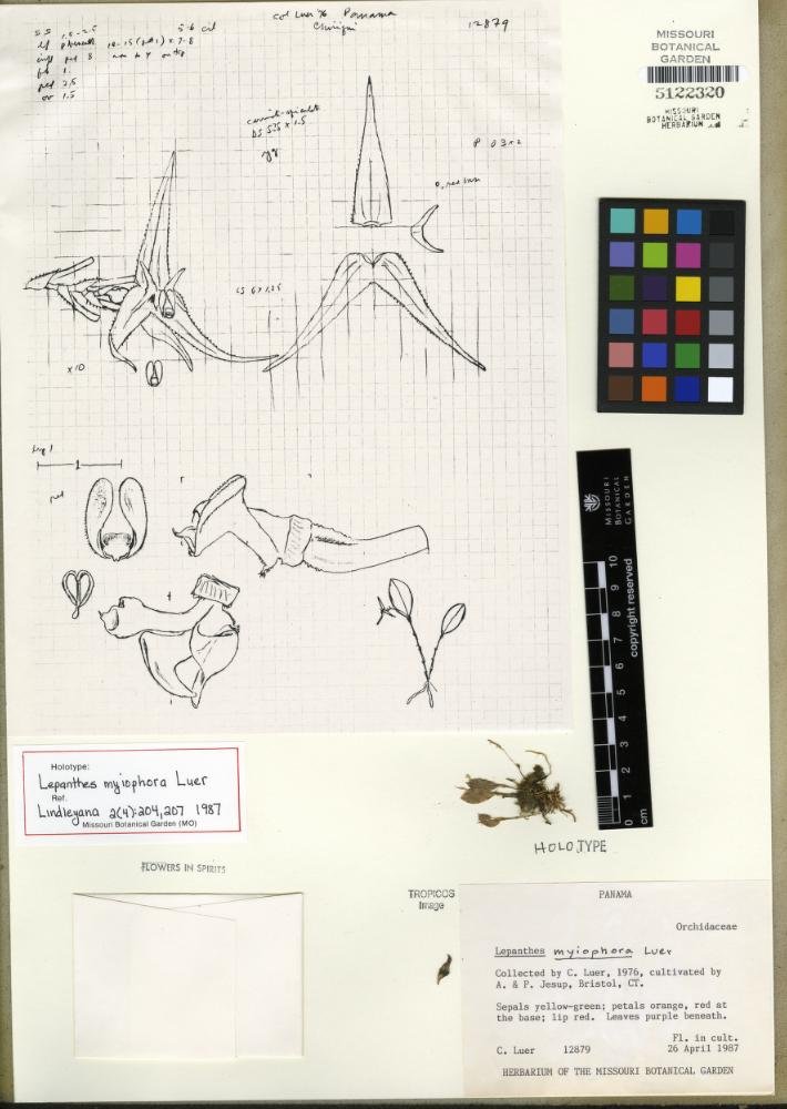 Lepanthes myiophora Luer, Lindleyana 2: 204. 1987.