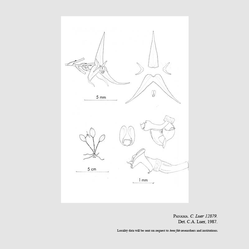 TYPE: Panama: Prov. of Chiriquí: near the Fortuna dam site, alt. ca. 1000 m, collected Dec. 1976 by C. Luer et al., flowered in cultivation by P. & A. Jesup in Bristol, CT., 26 April 1987., C. Luer 12879 (holotype, MO; illustration of type).