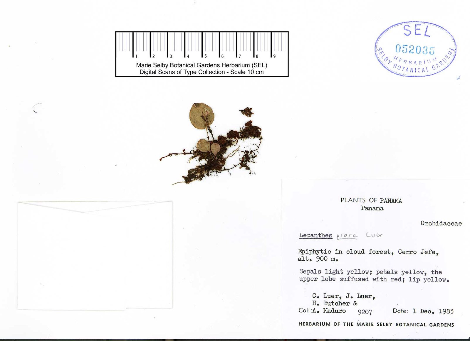 TYPE: Panama. Prov. of Panama: epiphytic in cloud forest, Cerro Jefe, alt. 900 m, 1 Dec. 1983, C. Luer, J. Luer, A. Maduro & H. Butcher 9207 (holotype, SEL; illustration of type).