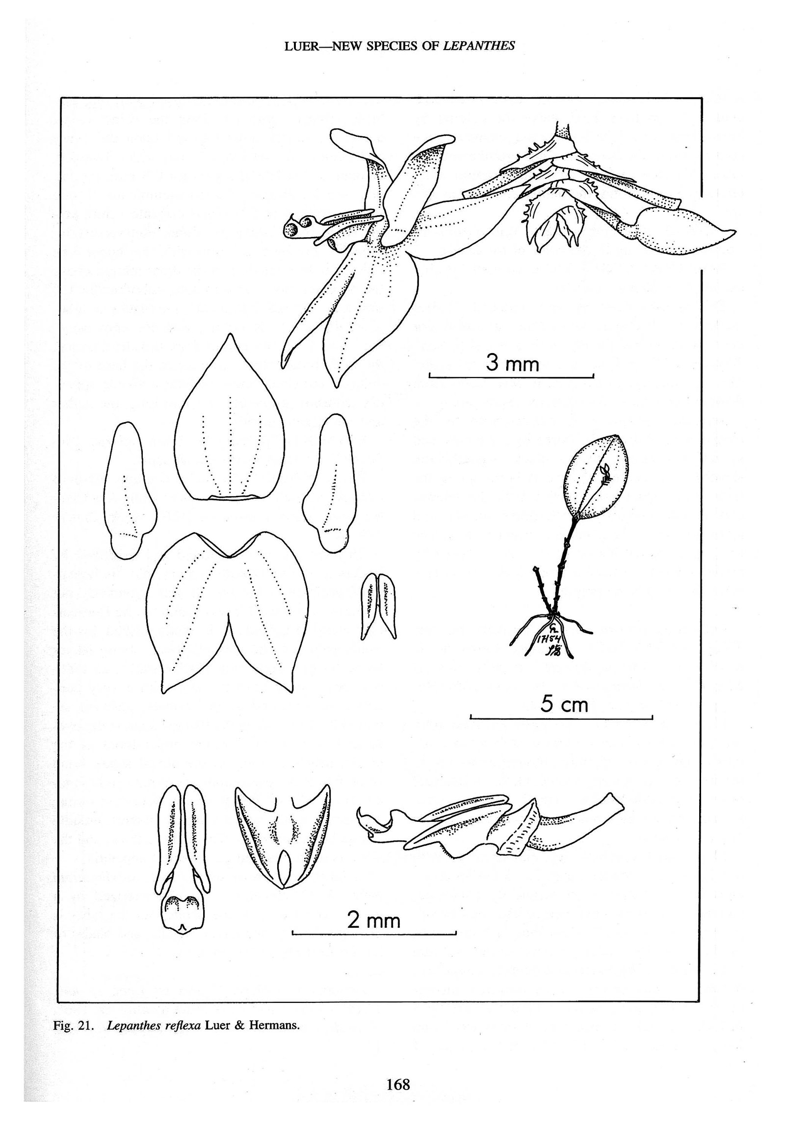 Lepanthes reflexa Luer, J. Hermans & C. Hermans, Lindleyana 10(3): 168, f. 21. 1995.
